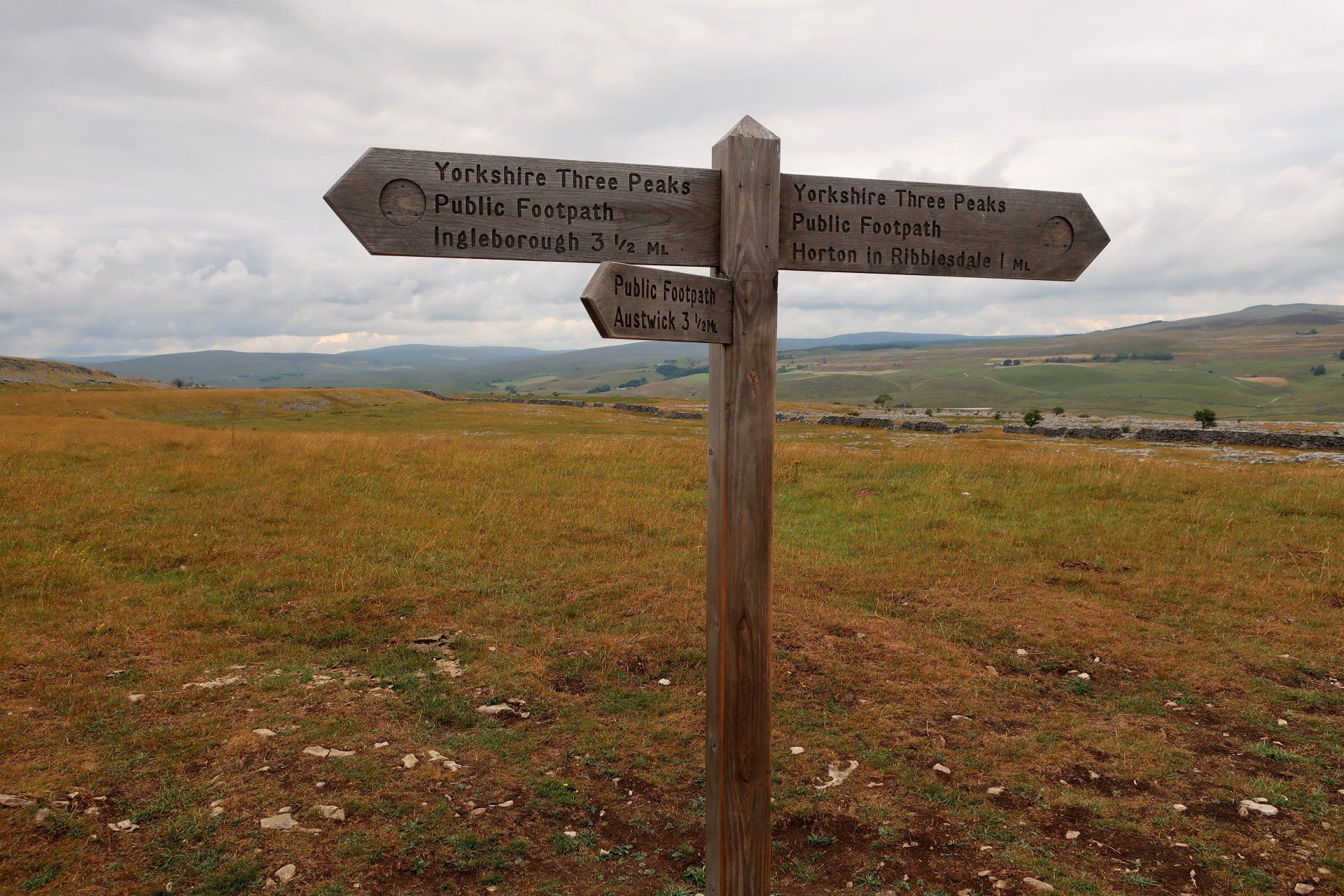 I am soon on my way and pass through HOR, seeing the PYG café, known by the 3 peakers (hope the defibrillator outside doesn’t put them off!) and the cute train station. Ingleborough is an immediate, if distant, presence but my attention does get pulled back to PYG behind me, which does sit so well as a backdrop to HOR. What a view.