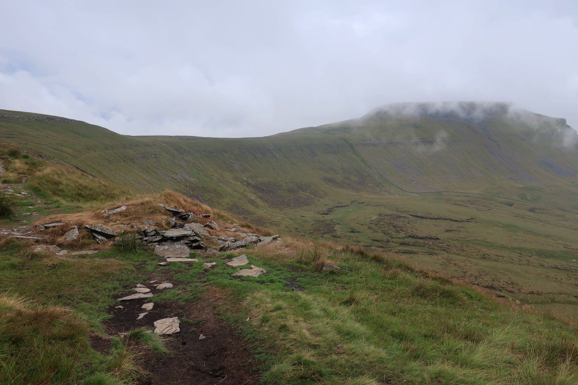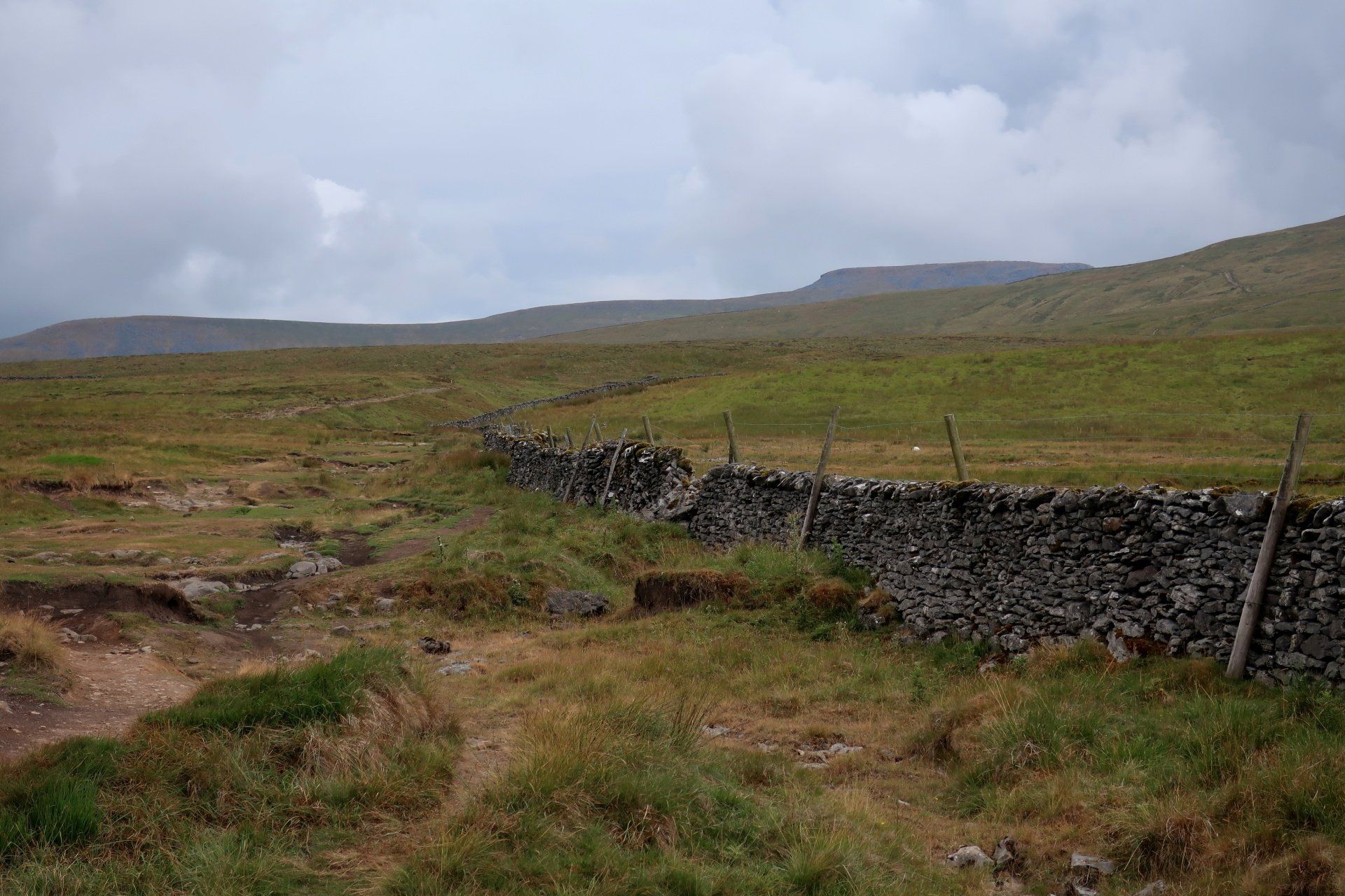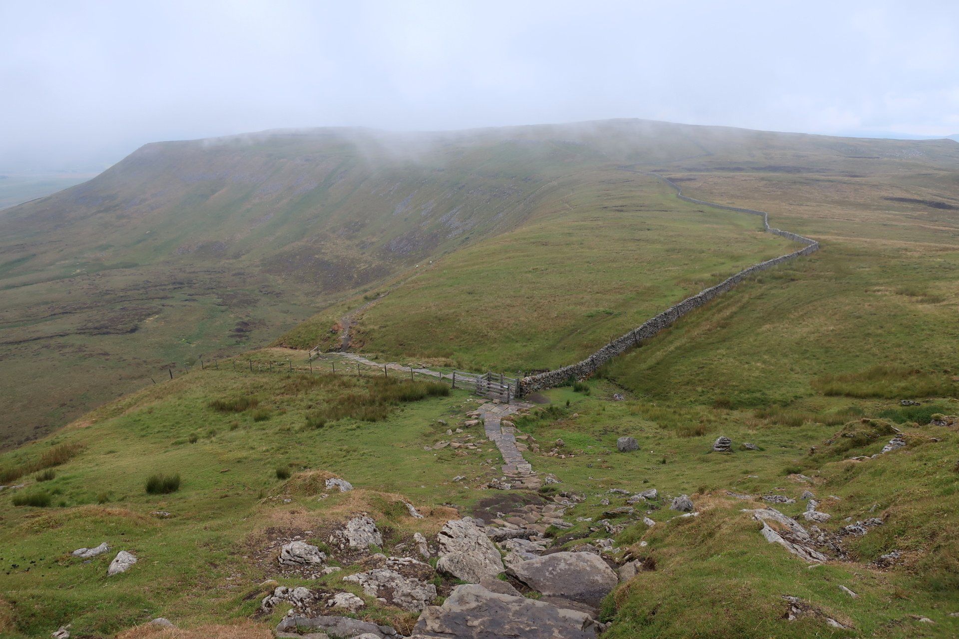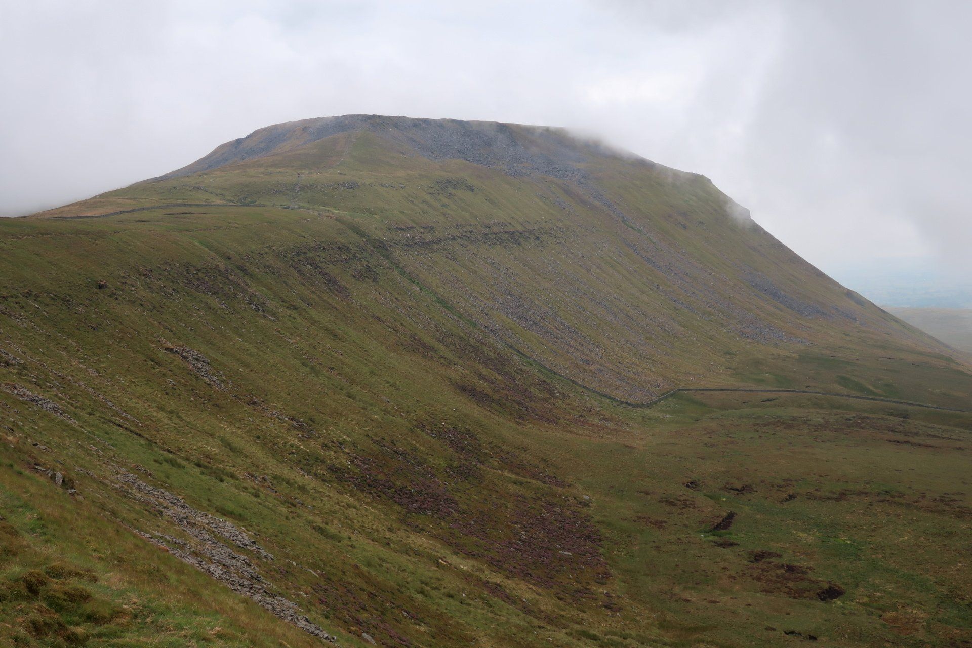 The going is fairly easy for the first 3 miles or so, including through some striking limestone plateau, the forward momentum taking me away from the pull of PYG and into that of Ingleborough. I am soon in the full focus of the mountain as the path begins to climb more steeply as I approach the base.