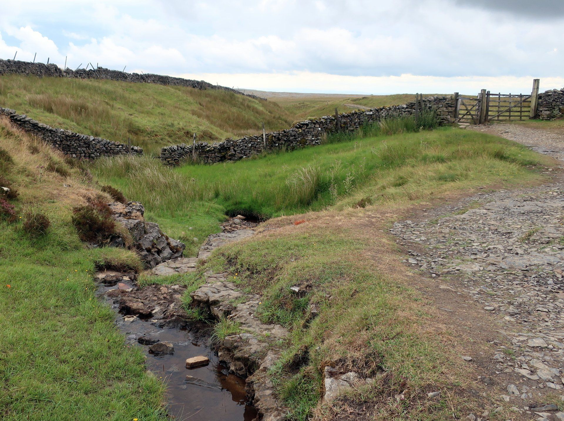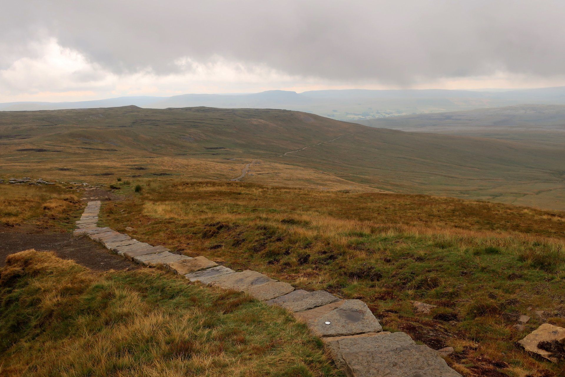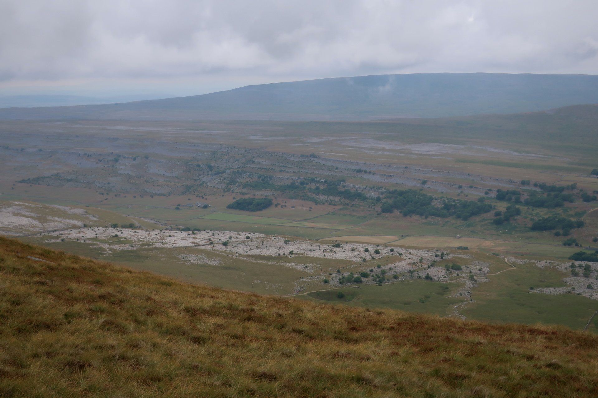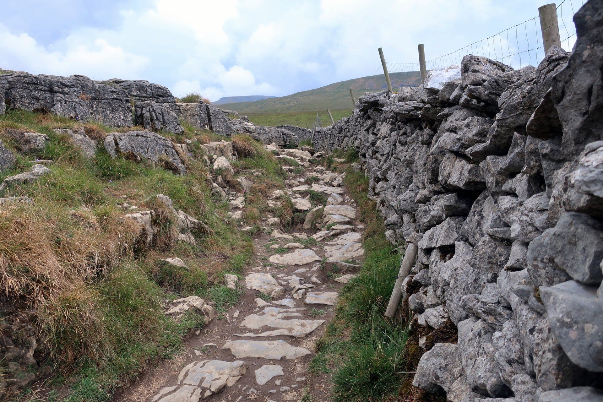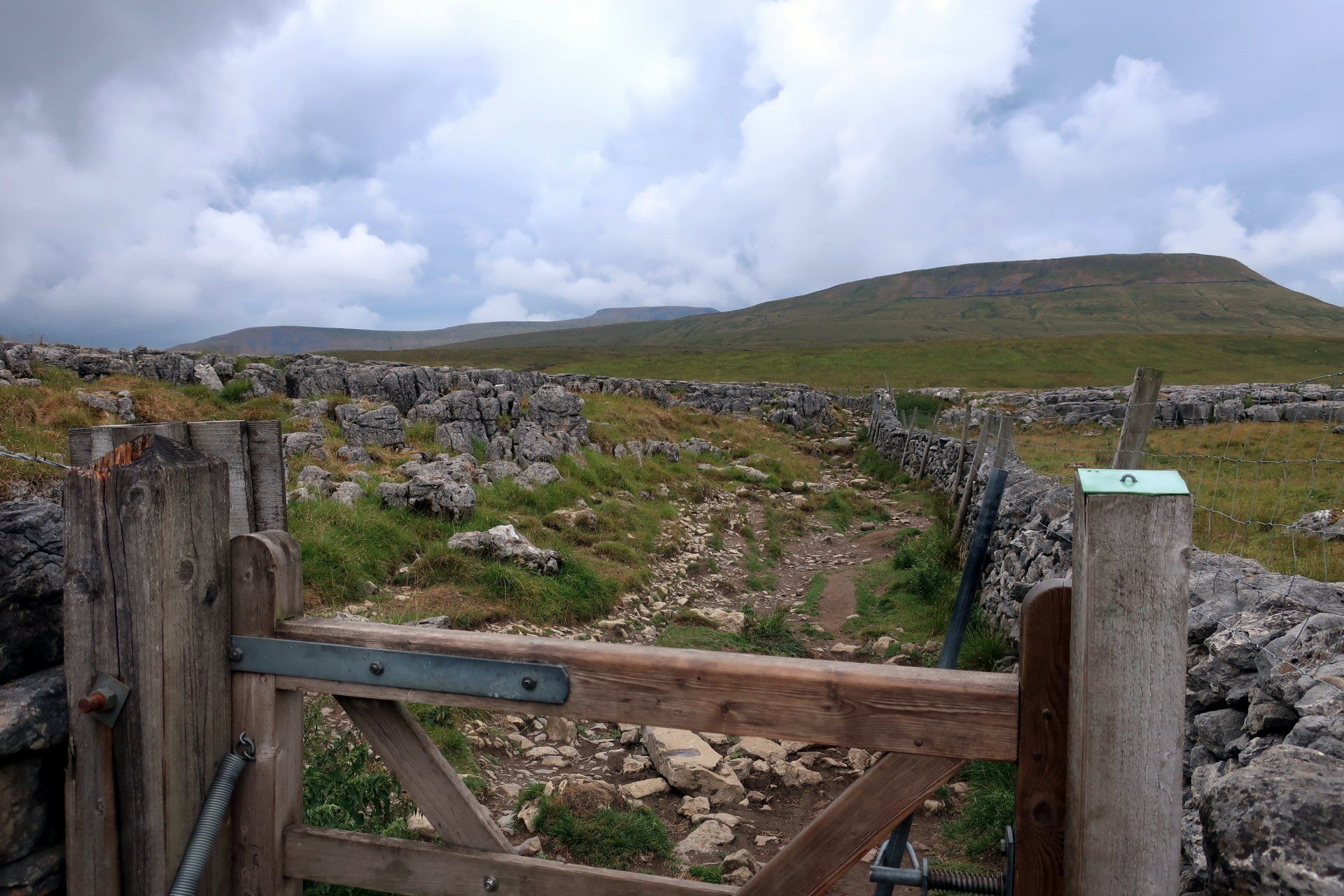 The going is fairly easy for the first 3 miles or so, including through some striking limestone plateau, the forward momentum taking me away from the pull of PYG and into that of Ingleborough. I am soon in the full focus of the mountain as the path begins to climb more steeply as I approach the base.