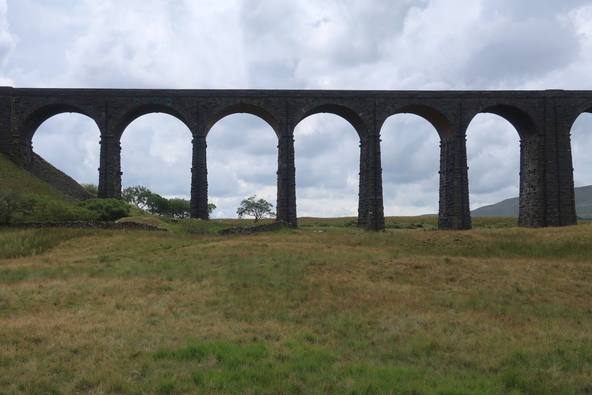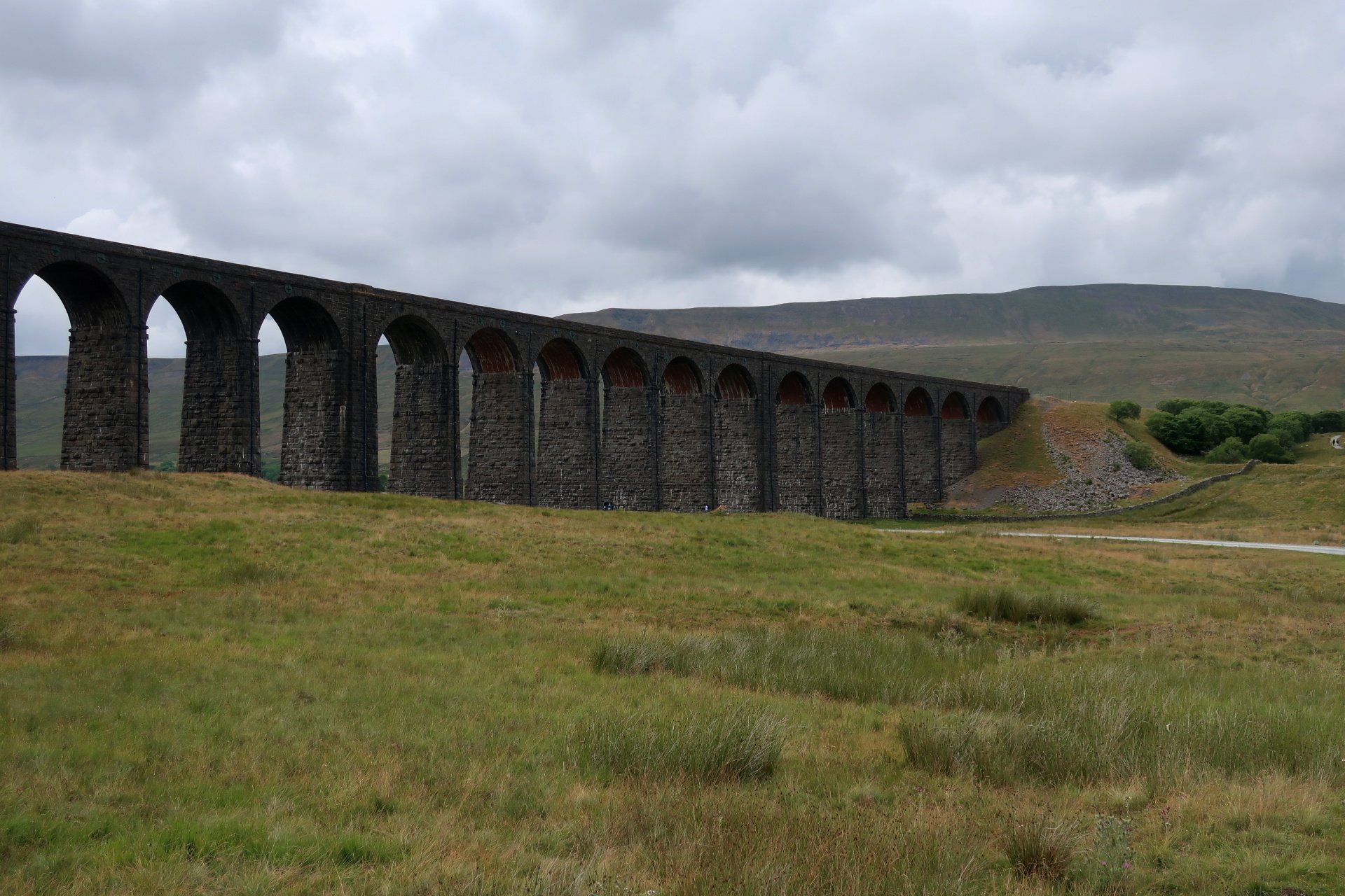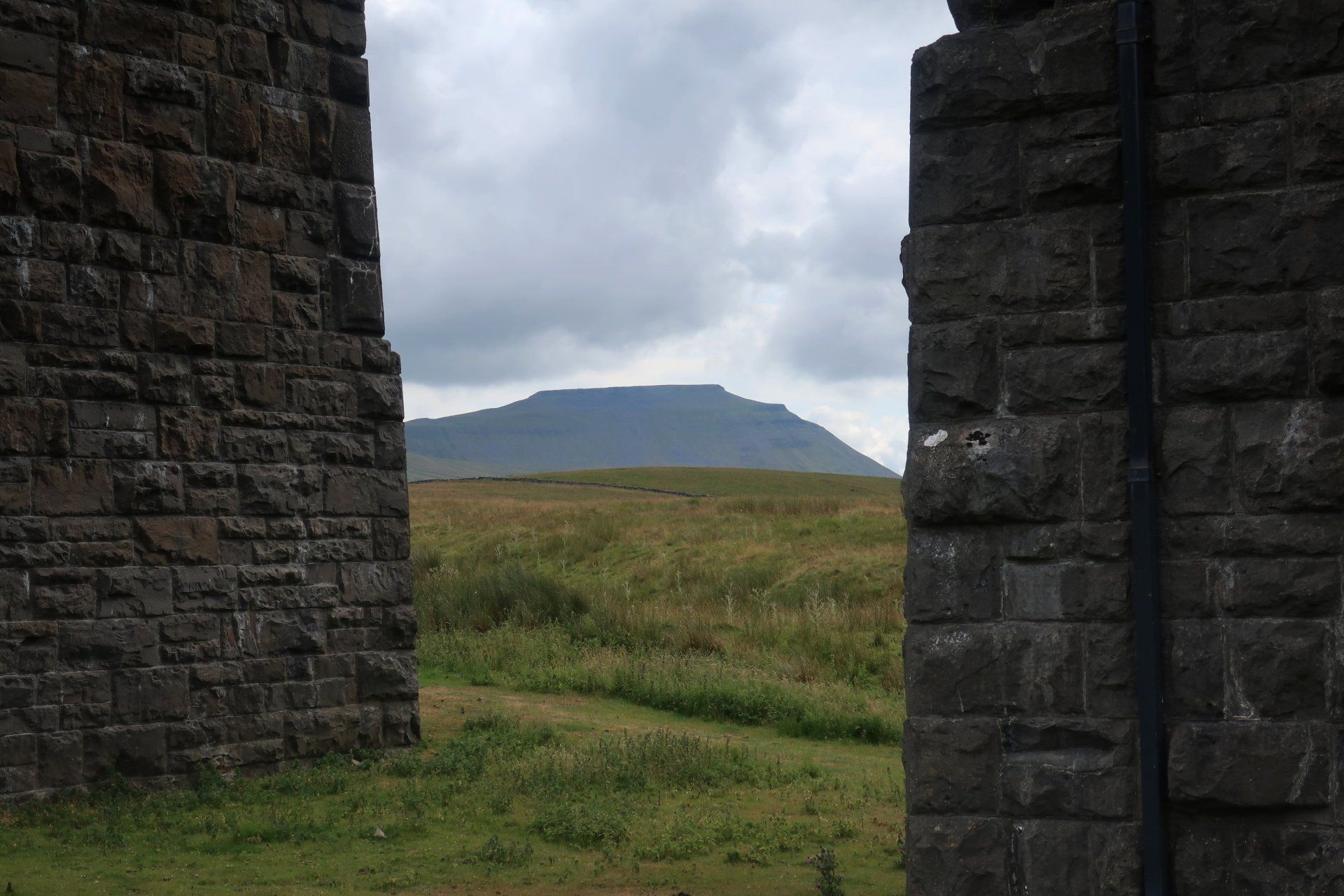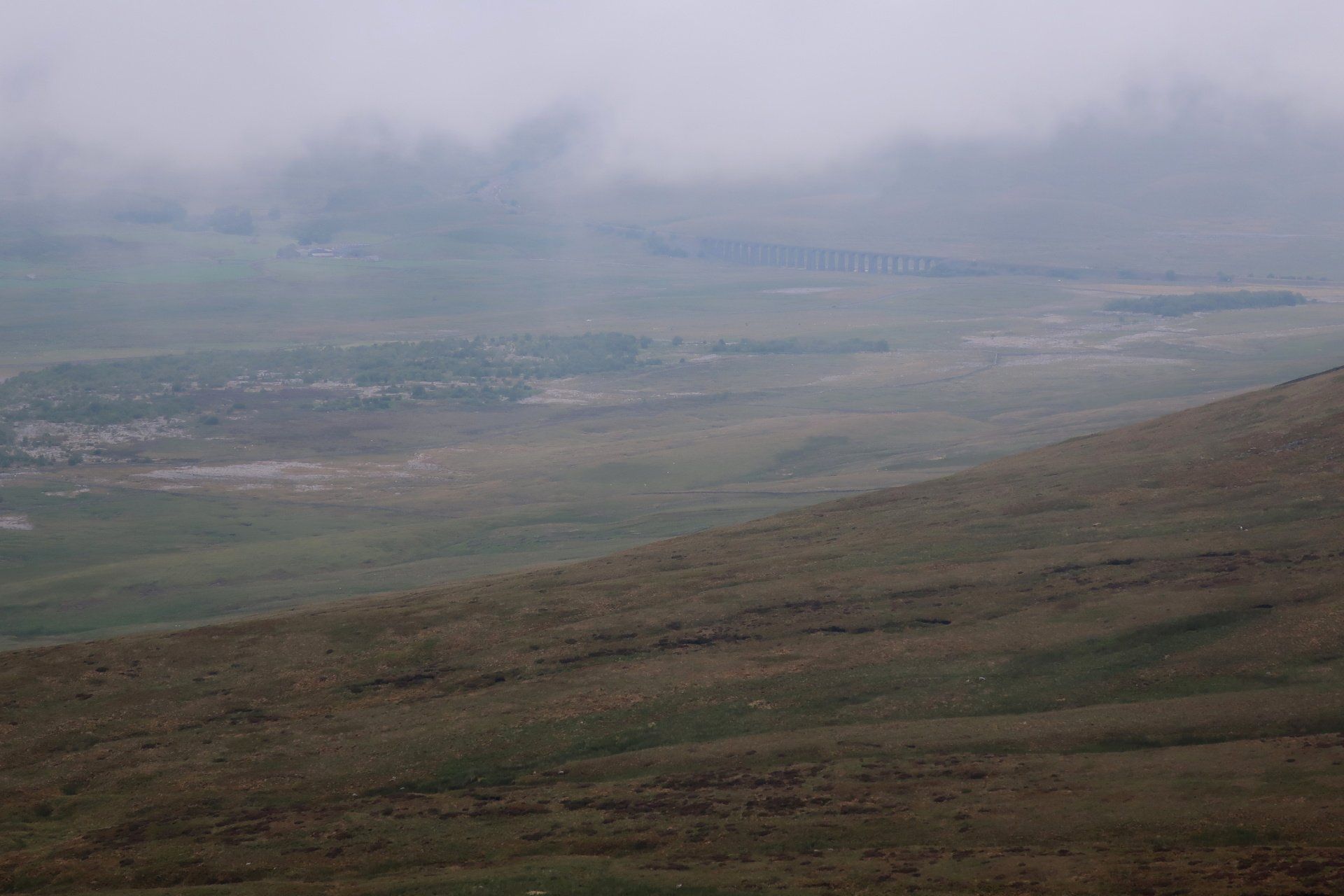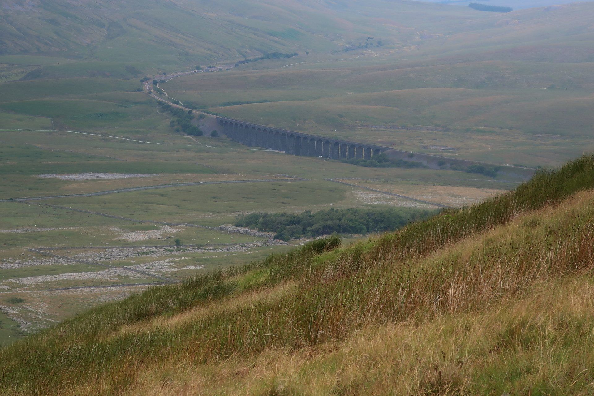 I sit for a while, sheltering from the wind behind a wall and enjoy the view – the viaduct now clearly in sight and Whernside opposite from me across the valley. Still a grand setting, whatever the weather.