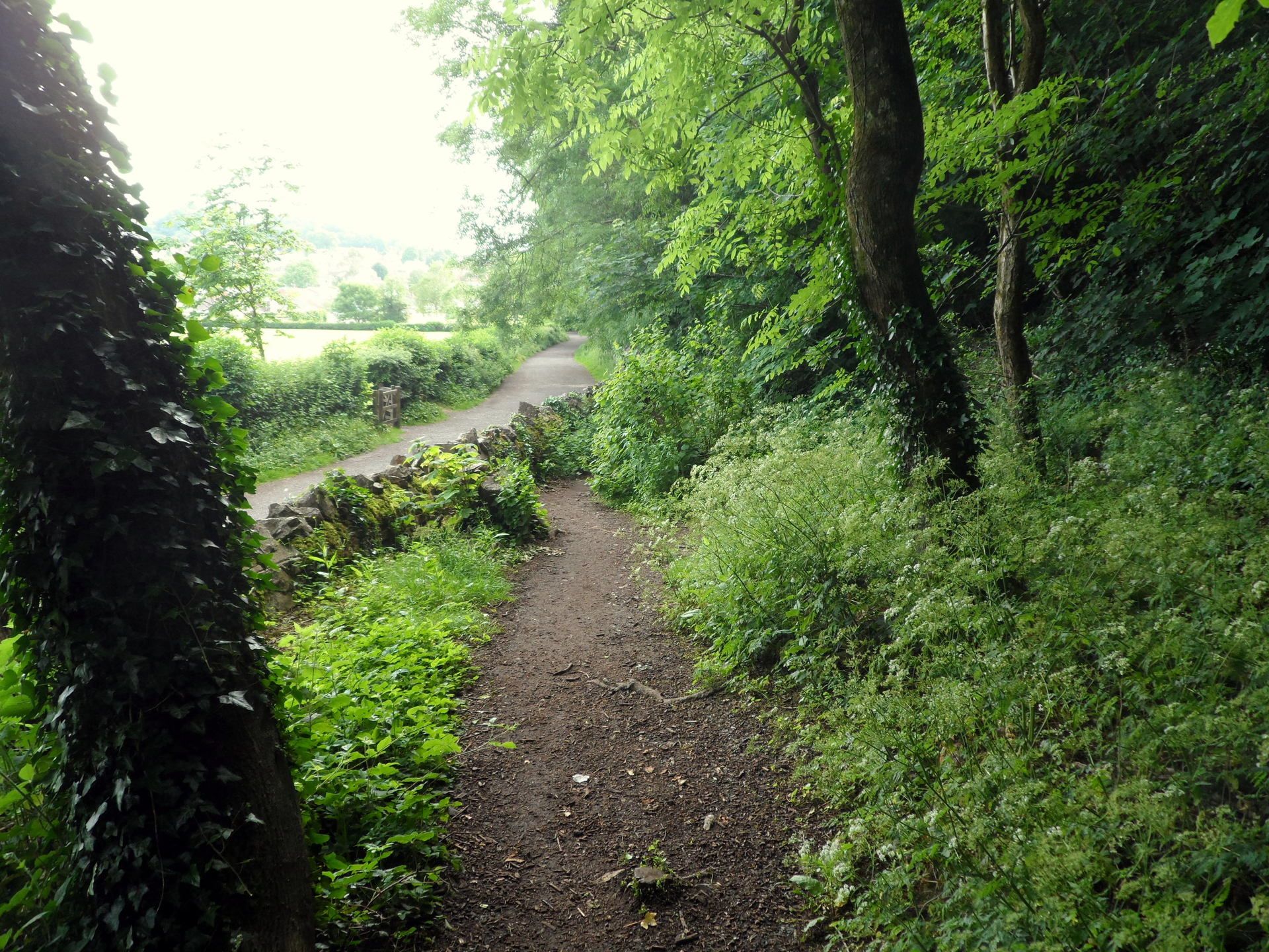 I had made good time so far but I am slowed by the “attack of the cows”. Climbing over a gate into a large field I see a herd of cows grazing at the far end, nothing unusual about that. What is unusual is a large, coffee coloured cow then stands up and starts to walk towards me, followed in similar fashion by all the others. Hmmm, I think, not sure about this. It is a large field and my gut is the trail goes straight across but I am not going to try that with a dozen cows bearing down on me. There is another metal gate to my right so I head for that…at a slightly quicker pace as I am sure the cows have upped theirs! The cows come right up to the gate and look at me. I assume they think I am bringing them food, I can’t think of any other reason they would get up, they were not threatened and there are no calfs. Nevertheless I am not going to mix it with them. However, where to go! I am in another field which leads nowhere, the only entrance /exit being the one guarded by the cows!. I know roughly where the trail is on GPS but how to get there. I spy a possible gap at the top of the field, so hop over the barbed wire (by hop I mean very carefully stepping over, thankful for long legs) then fight my way through the edge/trees/brambles/nettles/stuff to the next field. Unfortunately, this