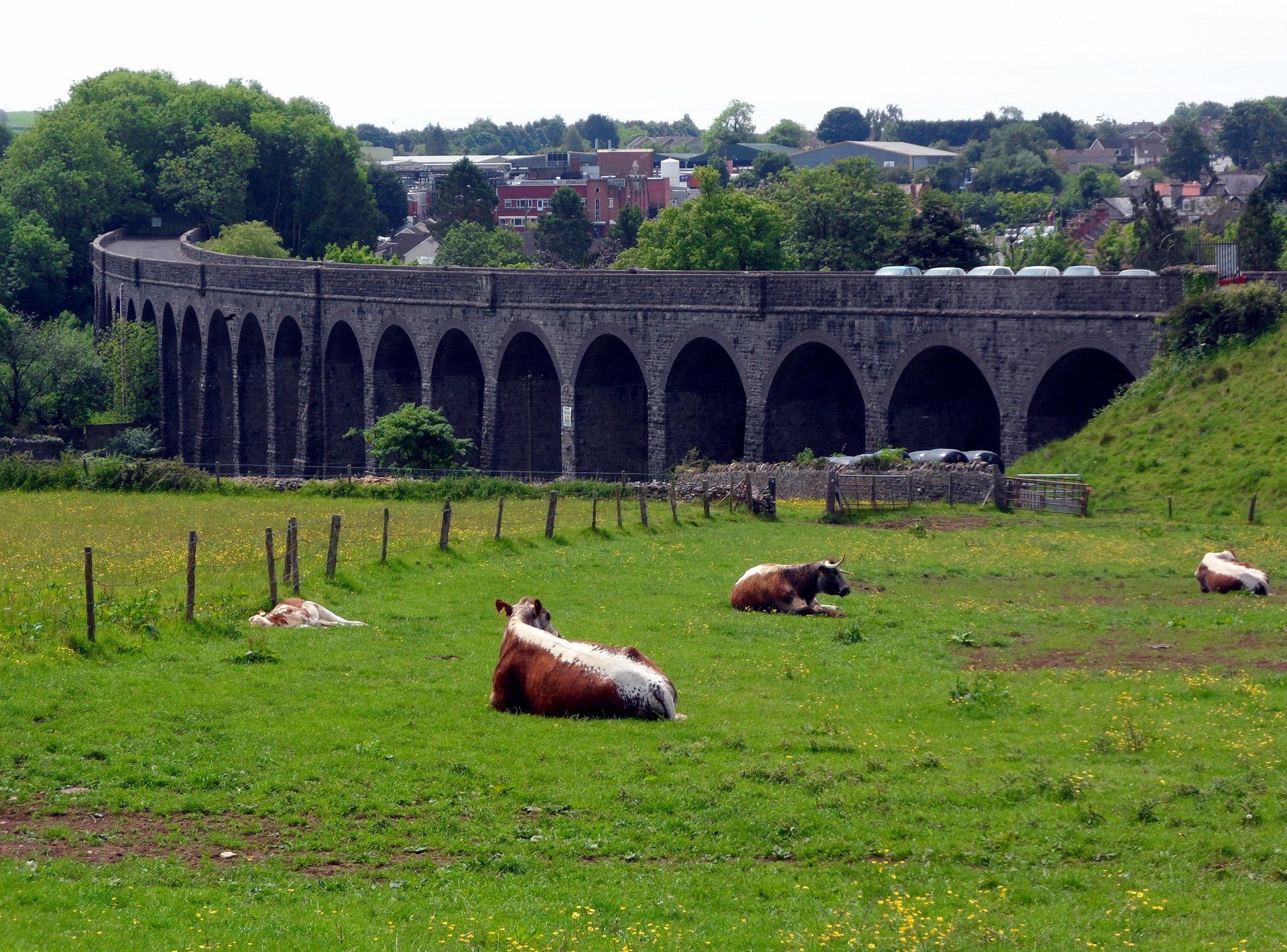 Some of the fields have high grass and many of the paths are overgrown (including lots of nettles) and my legs are getting rashy. Really I need long trousers rather than my shorts but I am not ready for my wet weather over-trousers so put on my gaiters for a bit of protection, removing them as I come up to Shepton Mallett so I don’t look ridiculous in the high street!. I take a short diversion from the trail into that high street, which is very picturesque but empty but manage to find a shop open and stock up on drinks as it is humid again. On leaving Shepton Mallett there is a very striking viaduct, I assume disused.