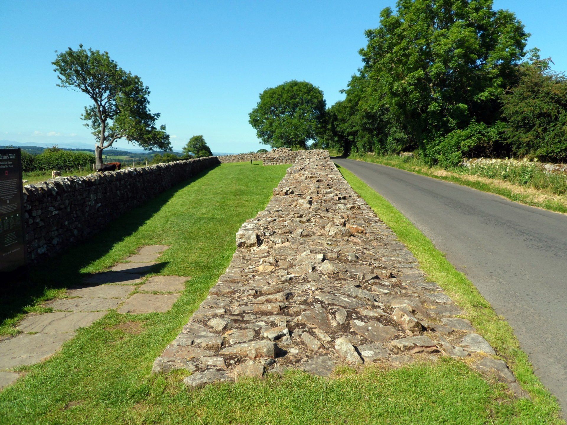 I continue my journey, through fields and paths, enjoying some good views and passing by more bits of wall or turrets. Just after 11:00 I reach Birdoswald Roman Fort, one of the few major forts that were located along the wall. It is now an English Heritage site so I pay my admission fee and mooch around the museum and exhibition, then outside to view the excavated remains of the site. I top up on provisions, get my next HWP passport stamp and after a brief rest in the shade move on. On leaving the fort I pass a long section of wall, I believe the longest existing. Impressive.