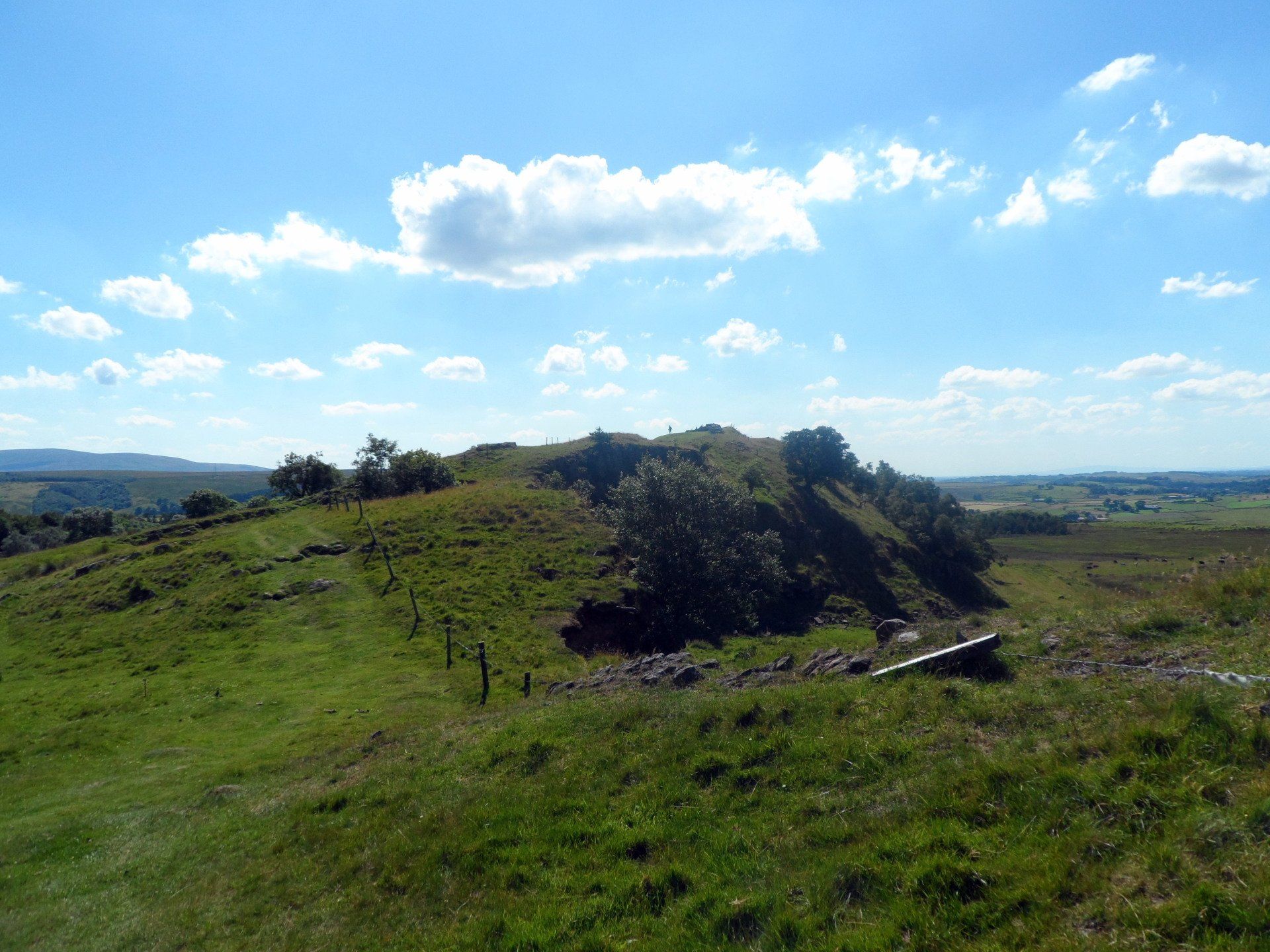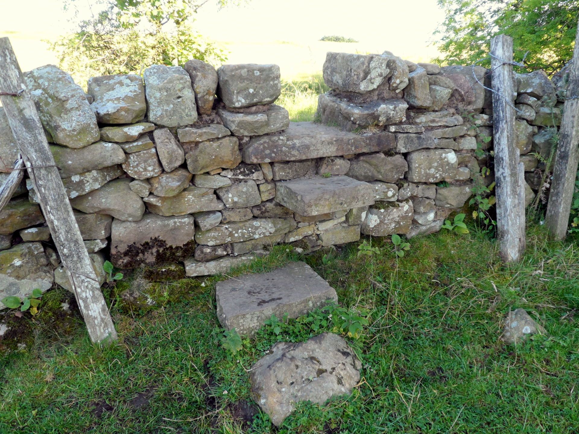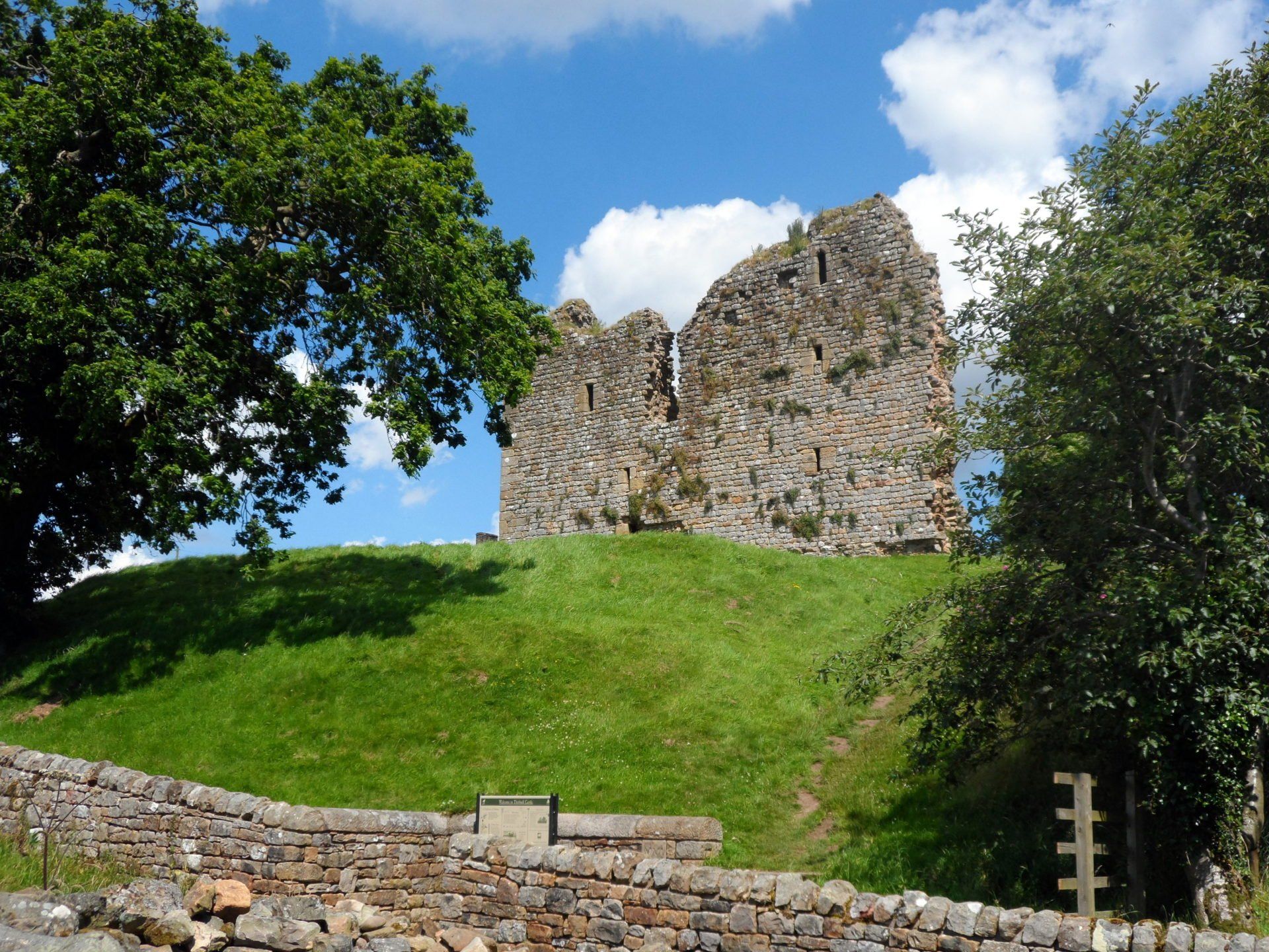 I pass from the county of Cumbria into Northumberland around the village of Gilsland and then cross a live railway (which is a novelty). I know it is live as a train thunders through just after I cross!. Soon after I come across the ruins of Thirwall Castle and scramble up a very steep slope for a look around and then carefully back down. Despite the heat the energy levels are still good!