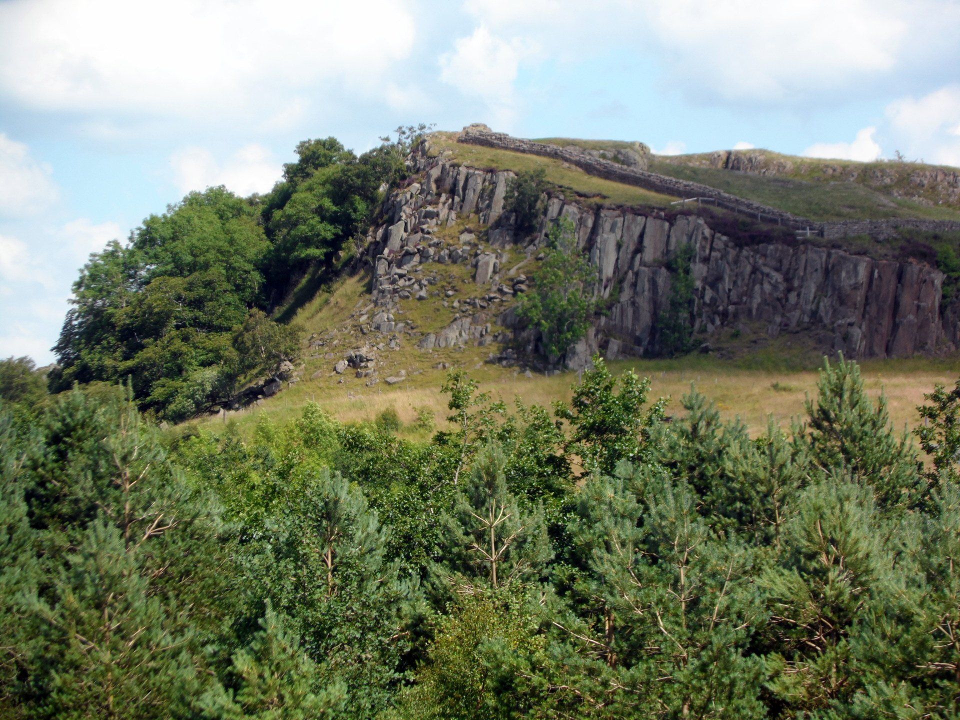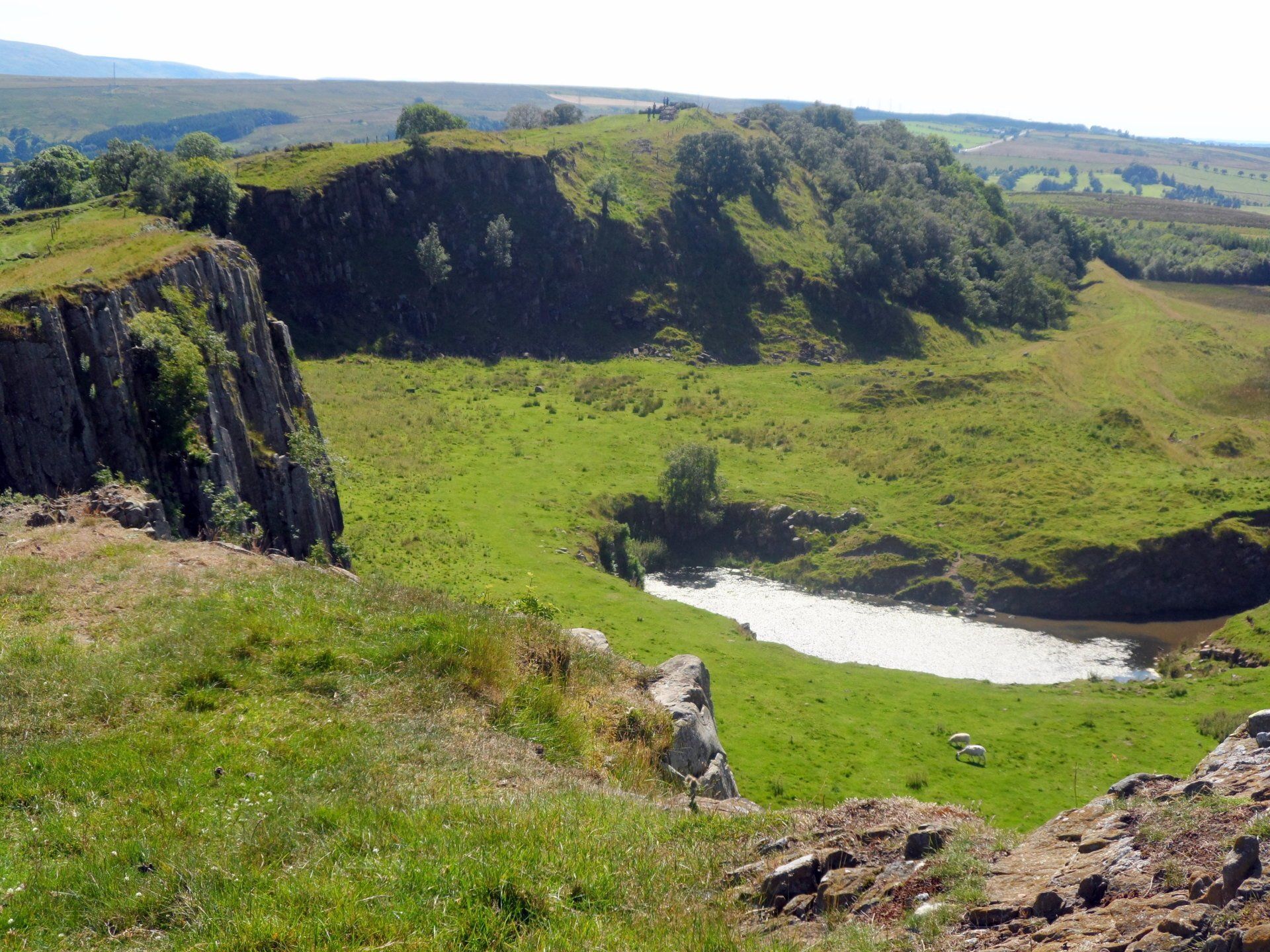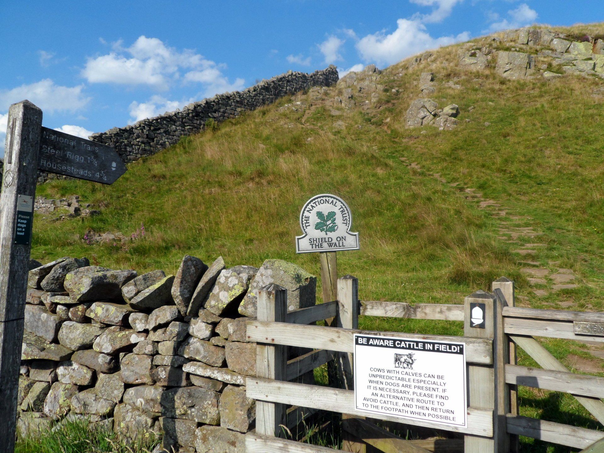 I pass from the county of Cumbria into Northumberland around the village of Gilsland and then cross a live railway (which is a novelty). I know it is live as a train thunders through just after I cross!. Soon after I come across the ruins of Thirwall Castle and scramble up a very steep slope for a look around and then carefully back down. Despite the heat the energy levels are still good!