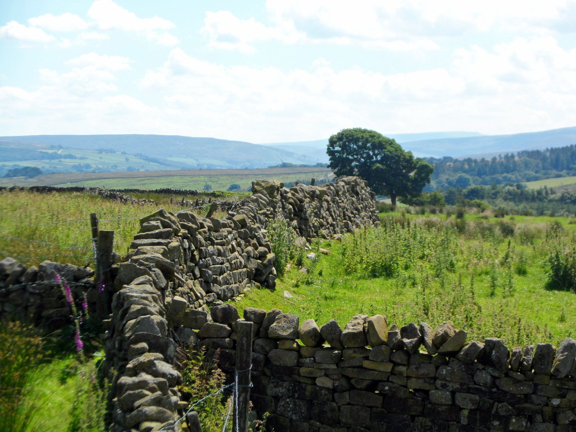 After a top up on food and fluid I am invigorated and set out to tackle the crags. It is hard for words to describe the next couple of hours, even for photos to do justice, but they are a walkers dream. The hills and crags rollercoaster along, often with wall remnants flowing with them providing some fantastic images. Wider scenic views from the higher crags give panoramic setting. Occasionally I just stand still and do a 360 to take it all in. The sun may make the day a strenuous one for walking but the blue skies and few blobs of white cloud give this a picture postcard look.