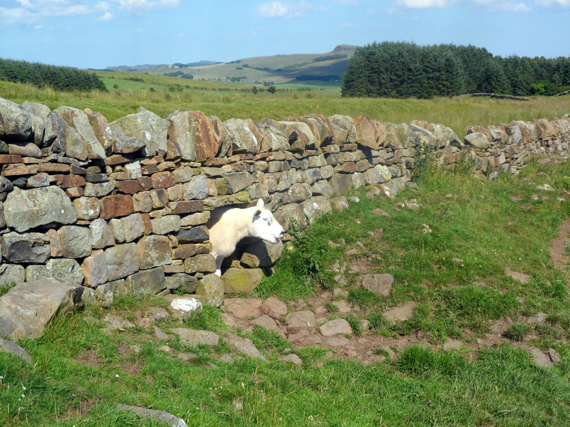 As I am walking along by a wall I see a sheep’s head poking out. Strange I think!. As I get close I can see there is a hole through the wall and the sheep is standing in this, with only it’s head to be seen. A sheep with brains obviously as it was doing this to get some shade from the sun