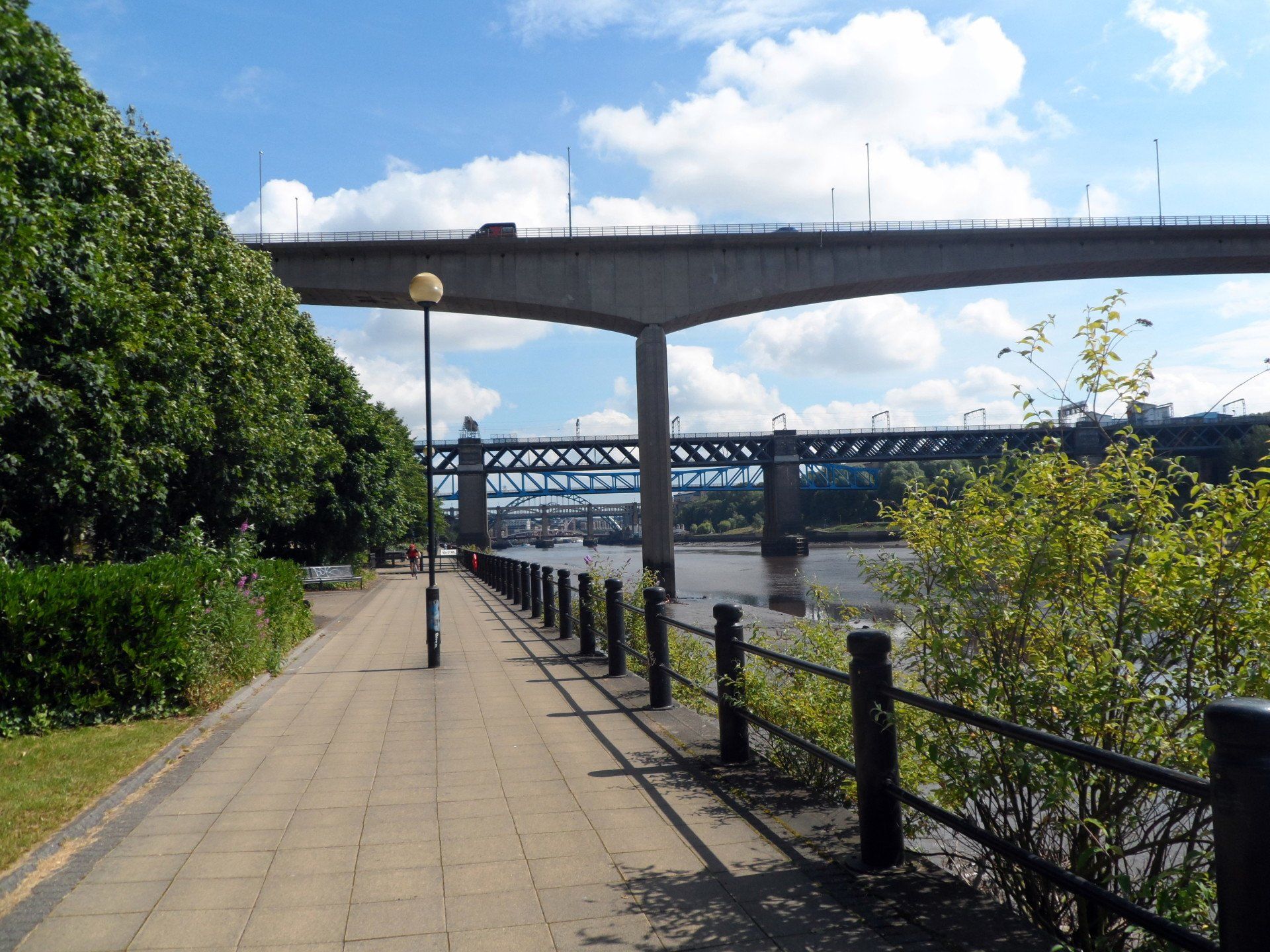 After a while I link up with the river Tyne and am set to follow this all the way into Quayside, firstly on nearby paths, or drifting off to nearby roads, later directly alongside the river bank. As with yesterday, much of this is also a cycle path for route 72. Signs of urban environment grow and it is clear I am heading into the city, before long I catch sight of the Quayside bridges and in short order cross the imaginary finishing line. Walk complete!