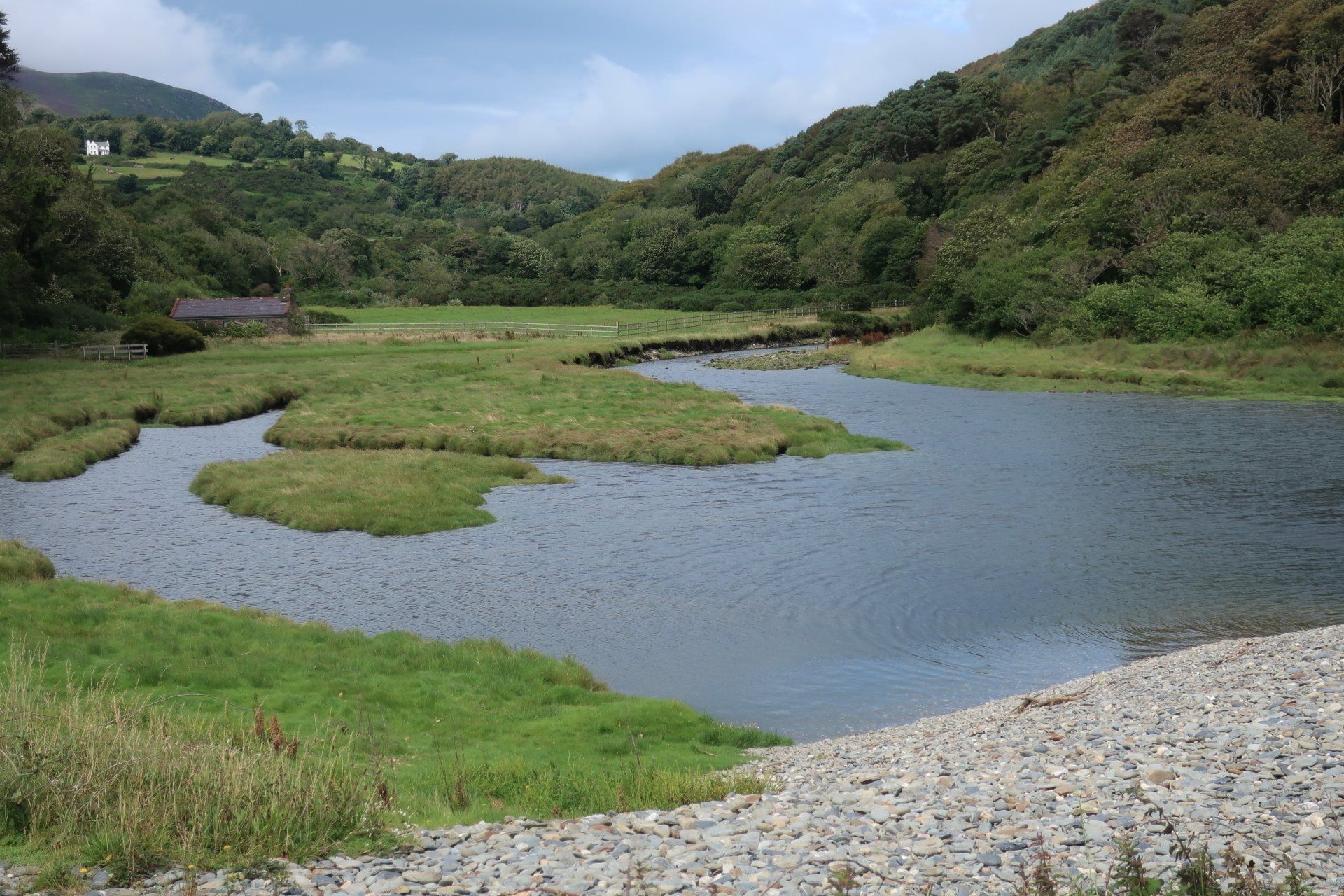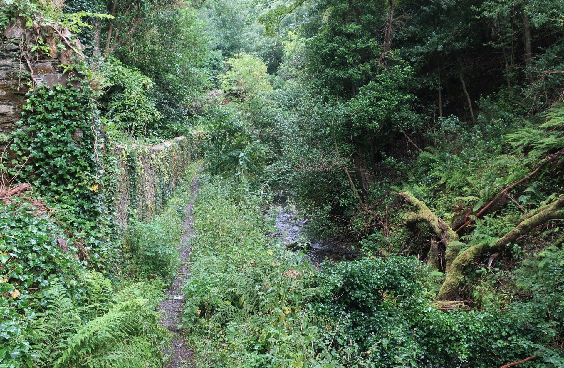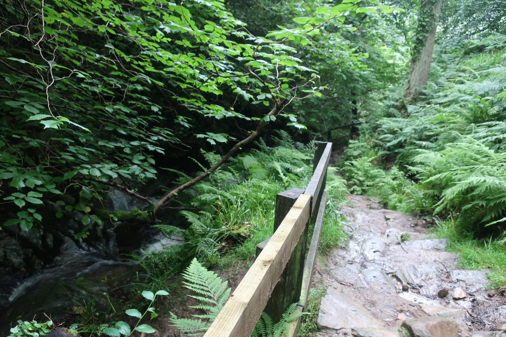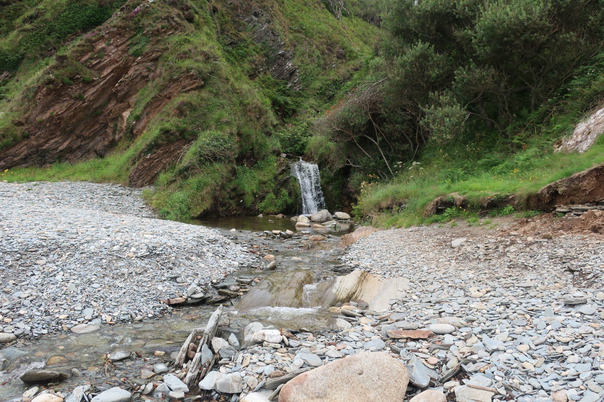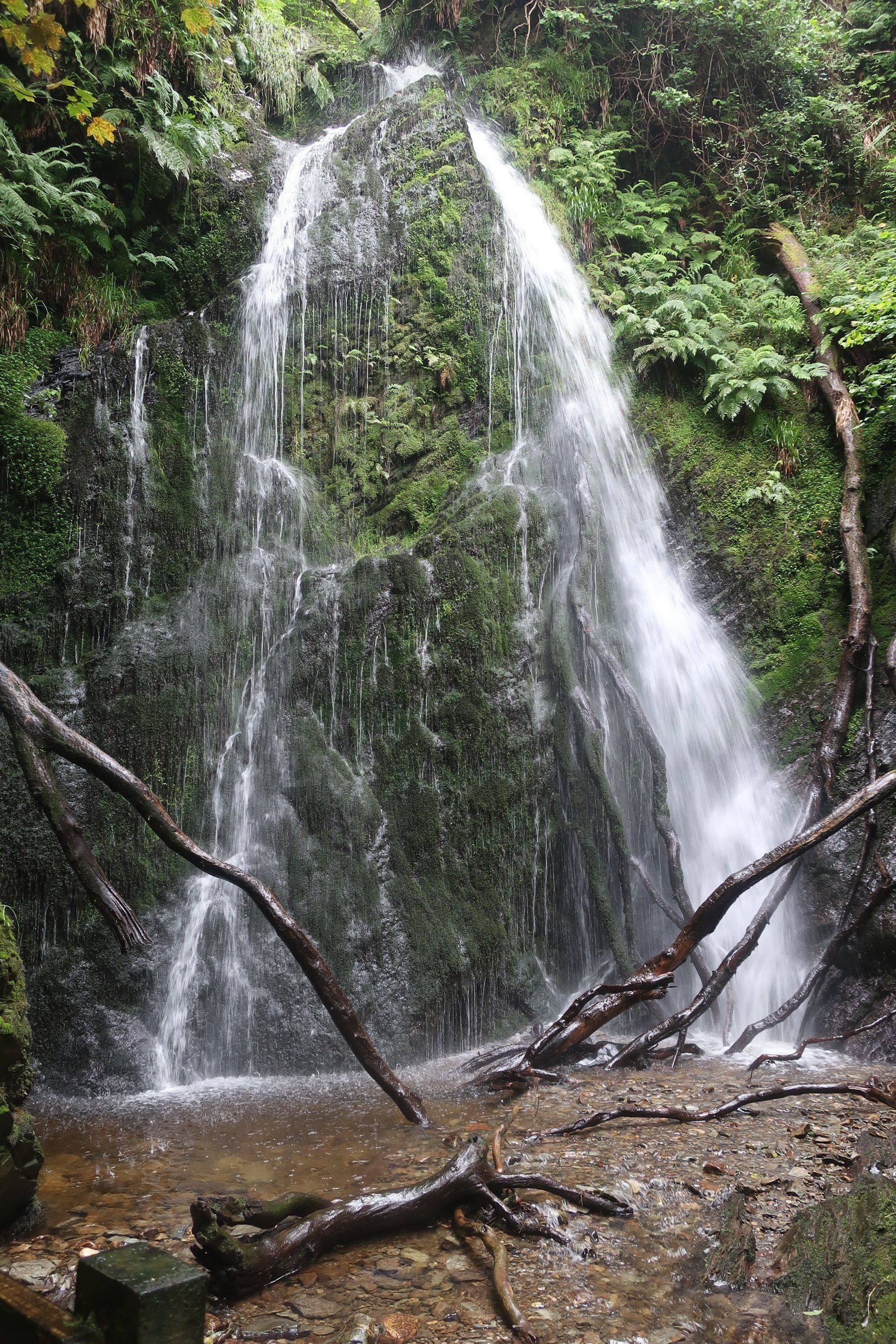 A few more miles, following the river which discharges into the sea at Port Cornaa, then back inland on the small lanes (on a long, steepish climb) until I reach my second glen – Dhoon Glen. This is different again, a steep sided valley, stepping down to the beach at Dhoon Bay, a mile or so up & down. It is most noticeable for an impressive waterfall “Big Girl”, at 130ft a decent fall. Again, lots of trees and paths winding around the streams make this very attractive and enjoyable, reinvigorating me despite the climbing