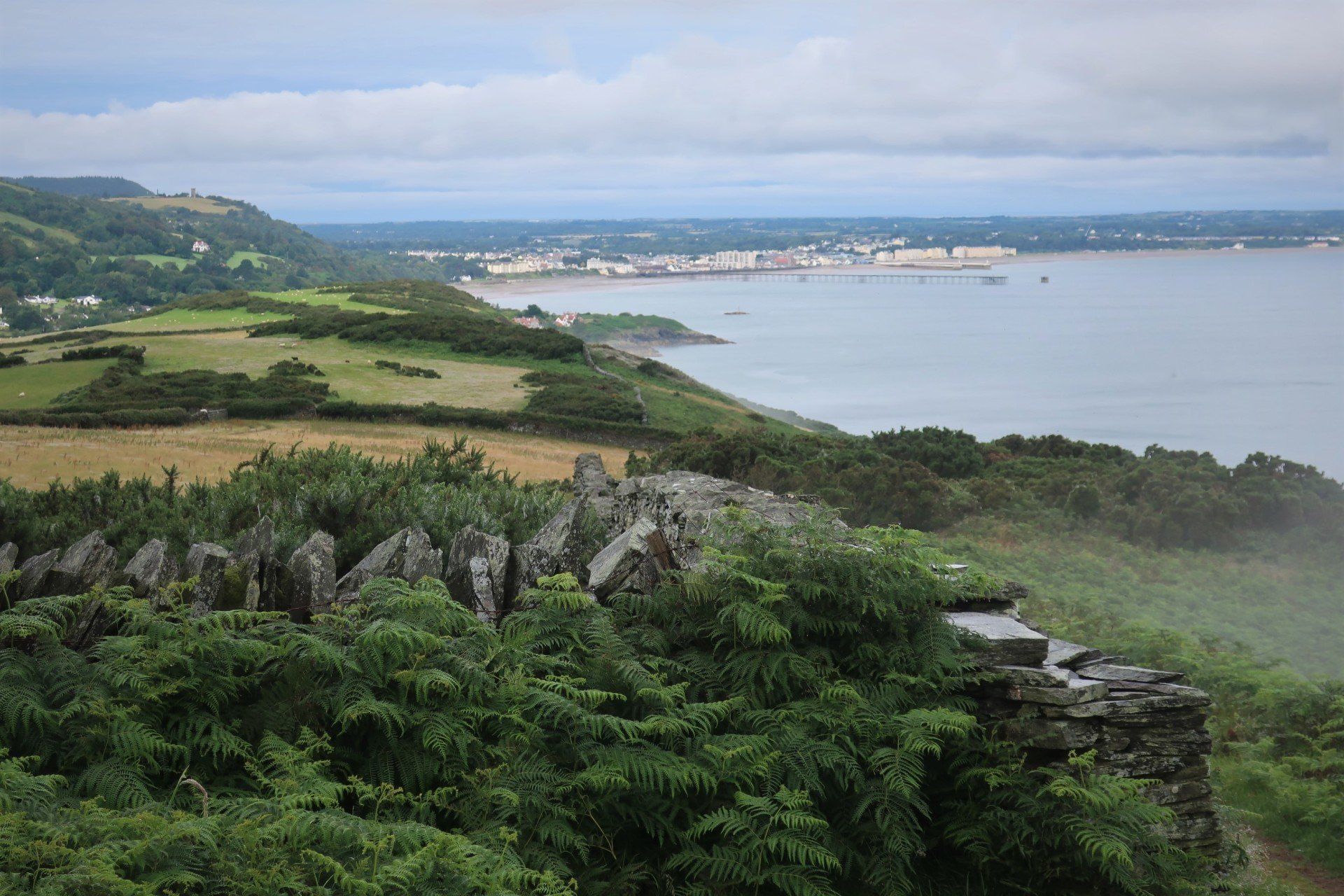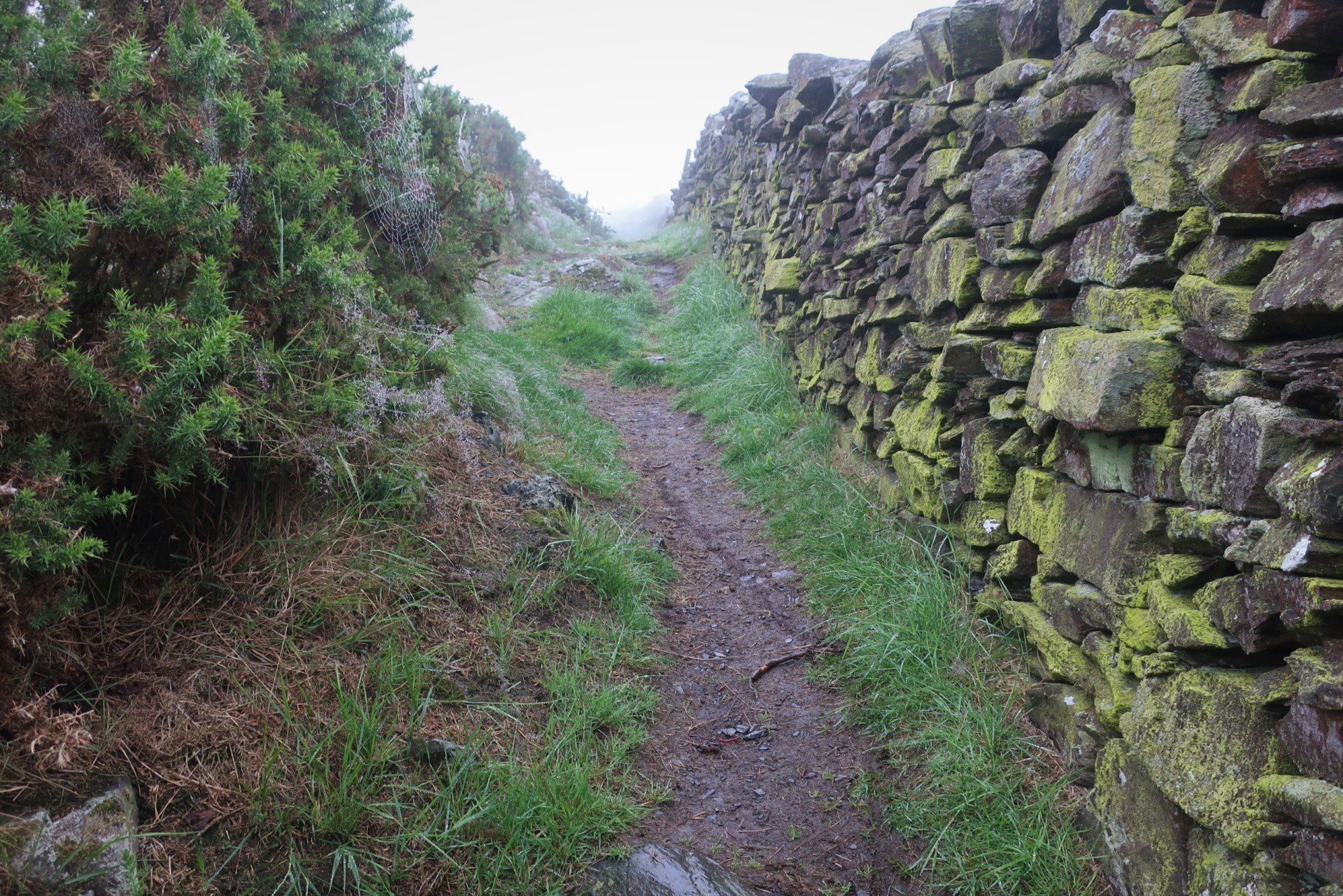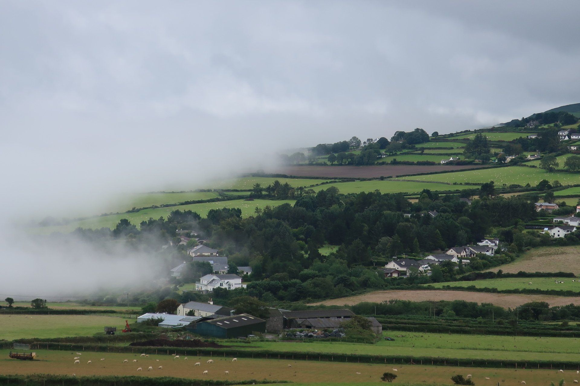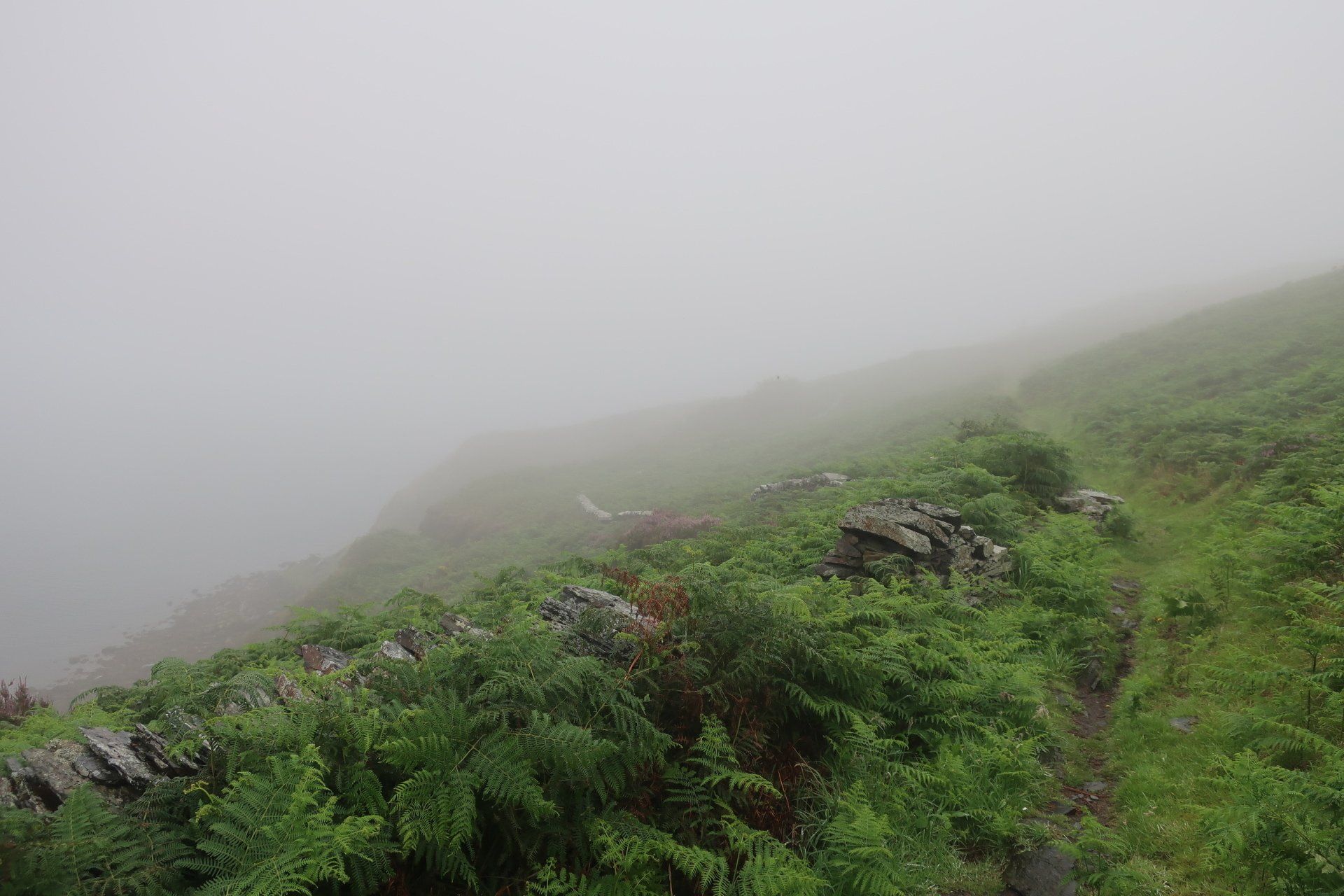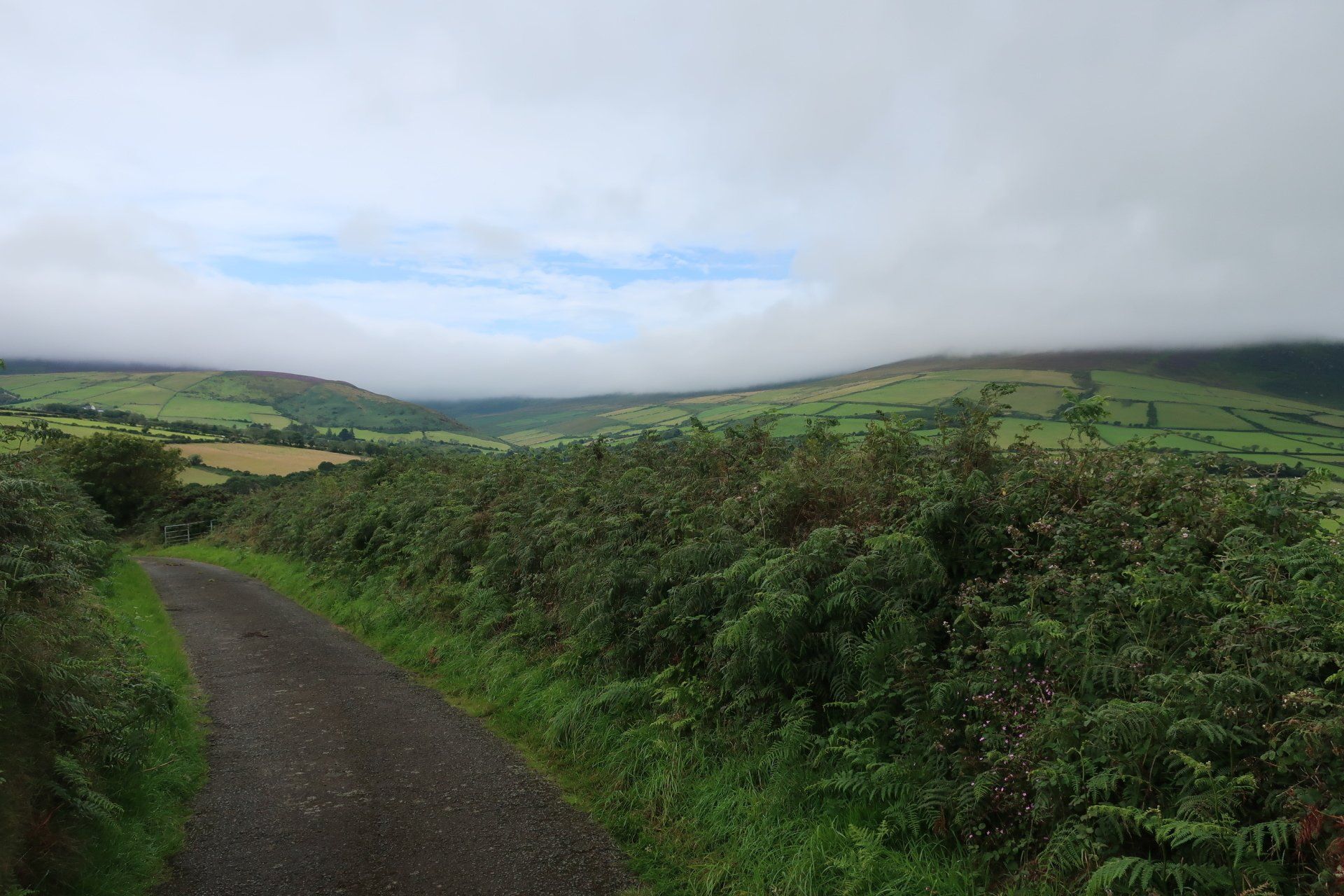 After a while I start an upwards trend, heading into the expanse of Maughold Brooghs, towards the highest point of the day. Of course, that attracts the low cloud again, so I am back to walking in a bubble, so I instead focus on the up close flora. Reaching the shelter at the top I stop for a snack and as if by magic, it clears and I have panoramic views back to Ramsey and all around, then the cloud rolls in, literally eating the land as I watch, until it is all devoured and I return to my bubble. Good show though!