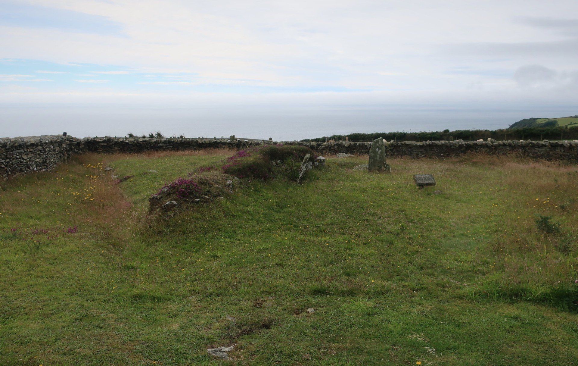 A mix of country and road walking takes me upwards again, but with clearing skies I have some good views, including looking back on my route. An area around Ballafayle Cairn, a Neolithic burial site, is a particularly fine spot and offers some interesting sights