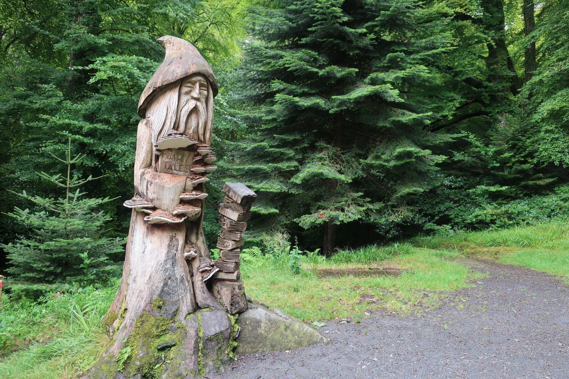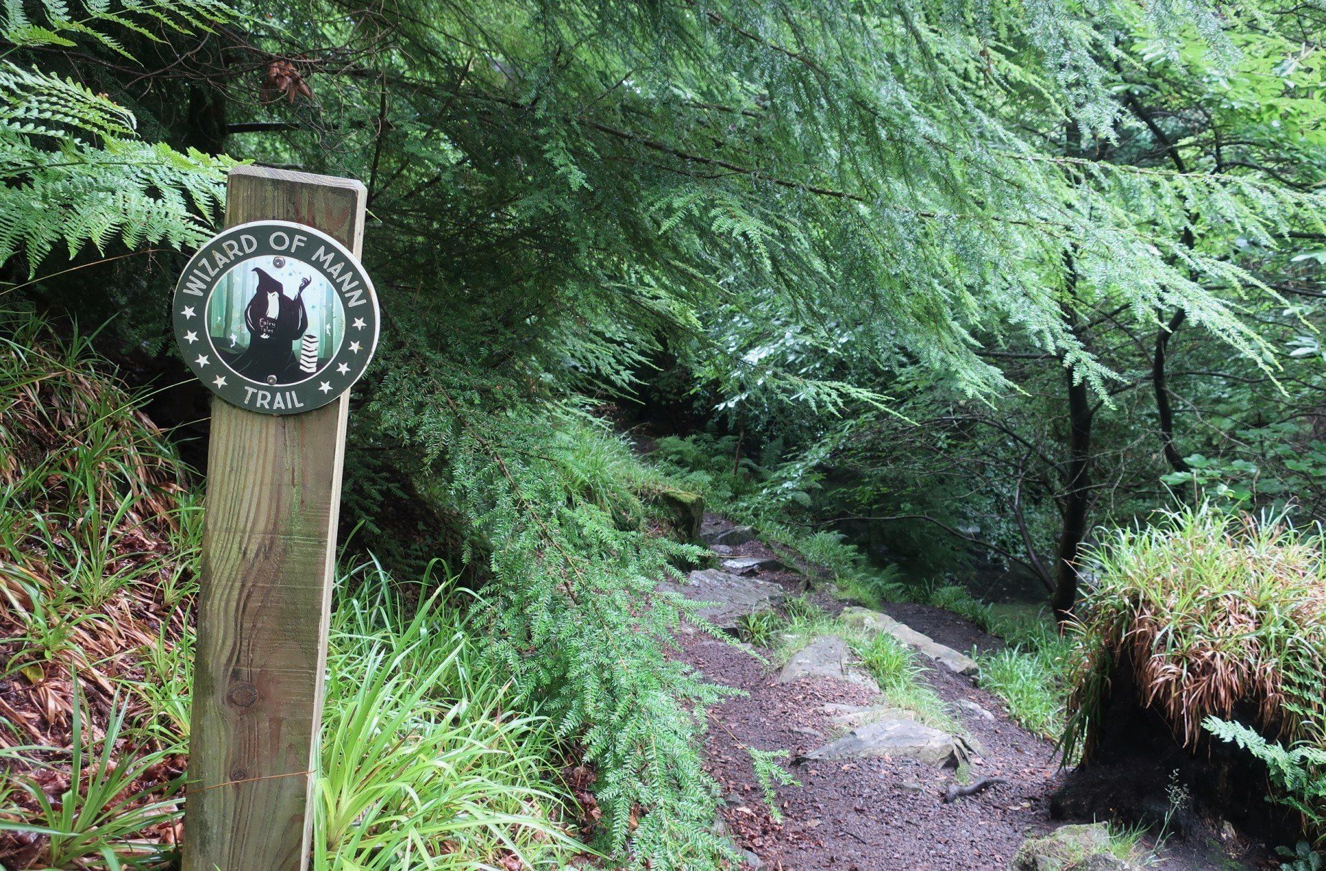 I reach the first of my scheduled glens – Ballaglass Glen – a very pretty woodland of tall trees, with rushing streams and a network of paths leading to all sorts of mysterious places, all watched over by the wizard. A heaven for kids with imagination…or even the adults who want to be kids!