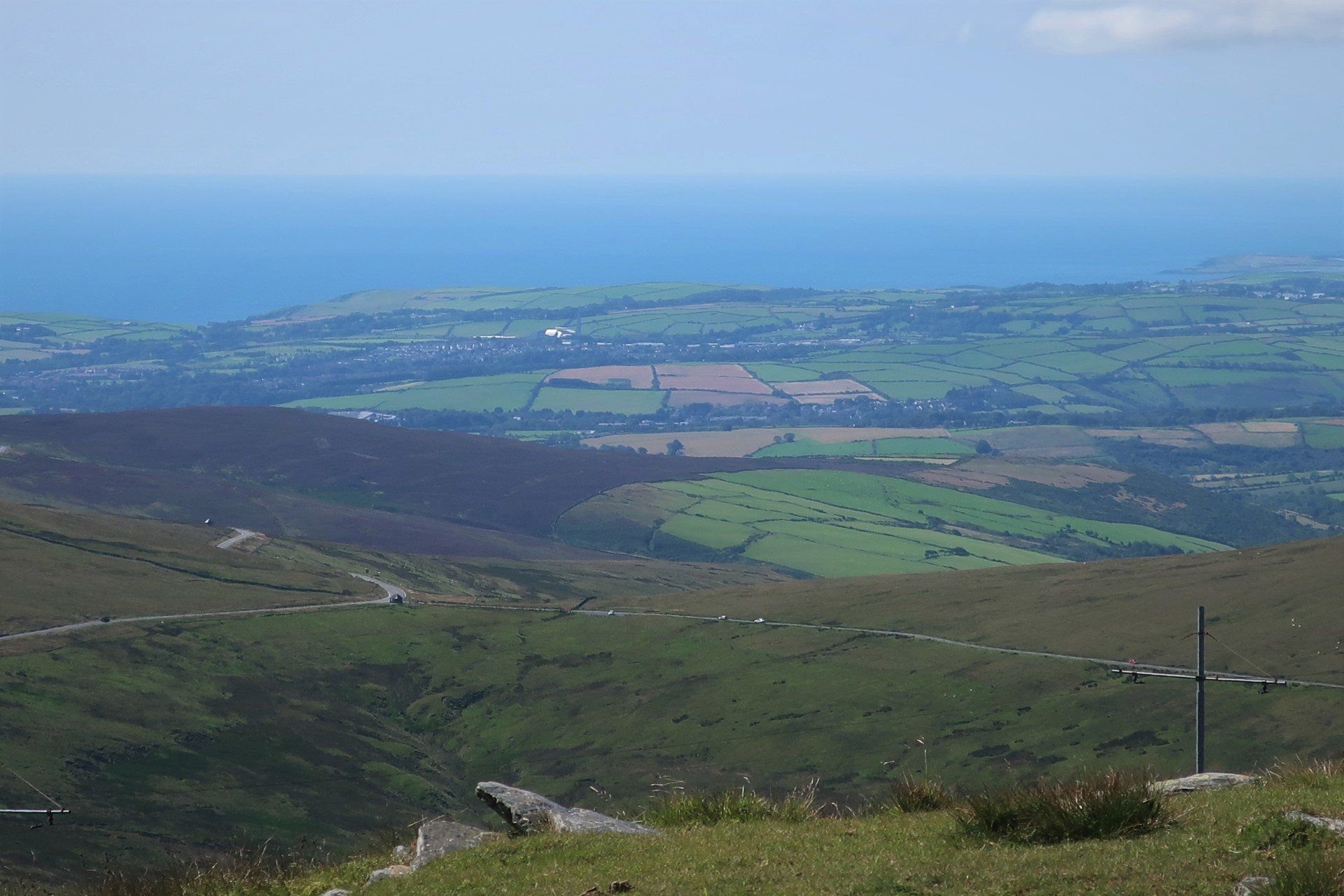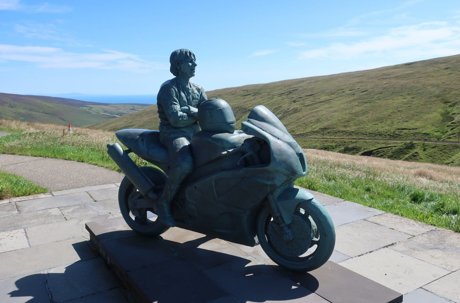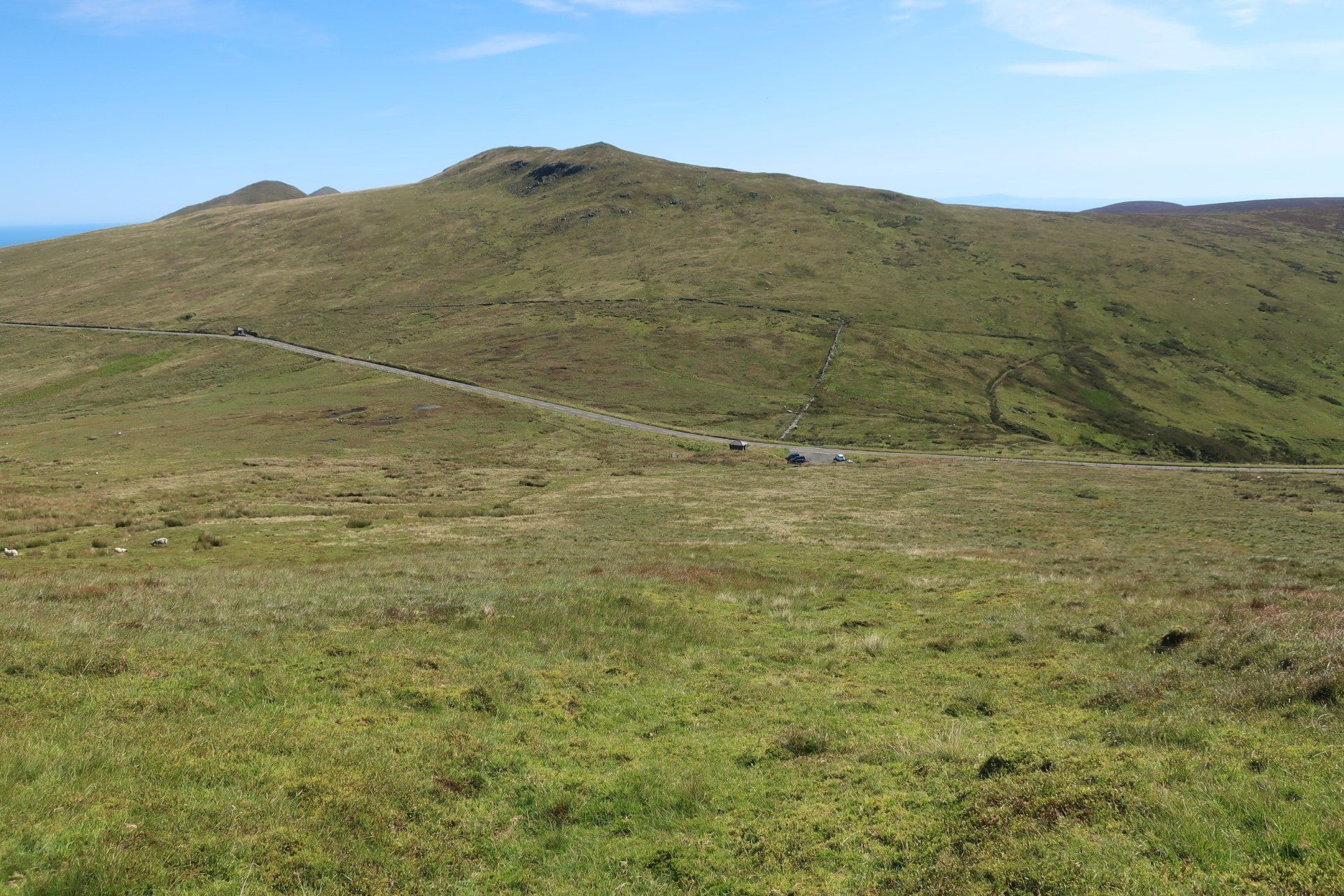 The gradient eases a bit and I can march on more normally for a lengthy climb, eventually leading to a road and car park area. The roads around here swoop and swirl around the hills, making for amazing driving or riding…of course, as honoured by the TT. To see those guys motor around here must be quite a spectacle. Some roads have no speed limit (deregulated) so even for the everyday boy/girl racers there are opportunities for fun