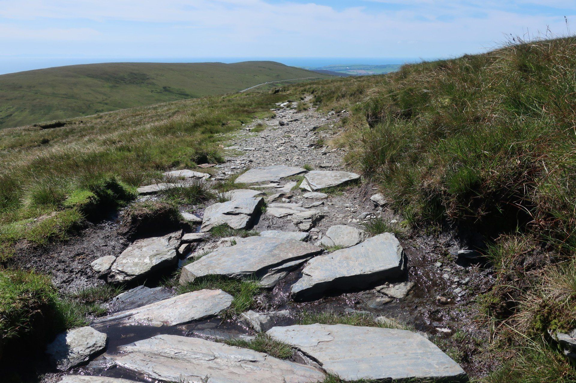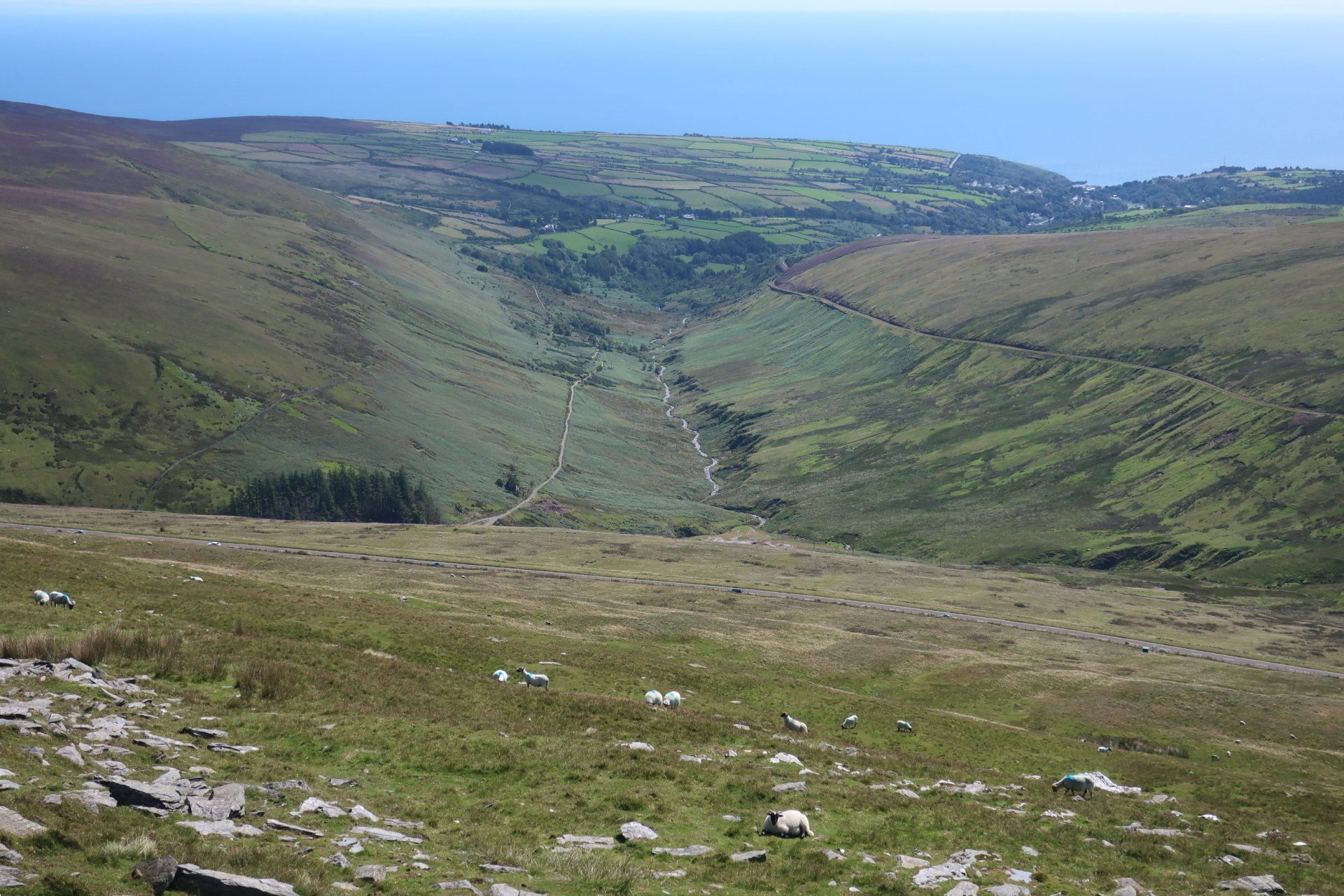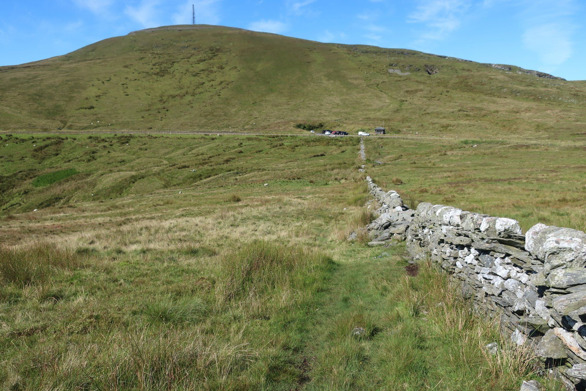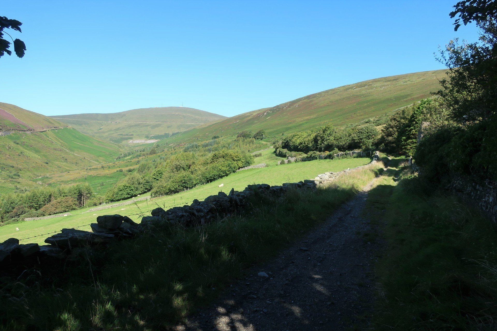 The gradient eases a bit and I can march on more normally for a lengthy climb, eventually leading to a road and car park area. The roads around here swoop and swirl around the hills, making for amazing driving or riding…of course, as honoured by the TT. To see those guys motor around here must be quite a spectacle. Some roads have no speed limit (deregulated) so even for the everyday boy/girl racers there are opportunities for fun