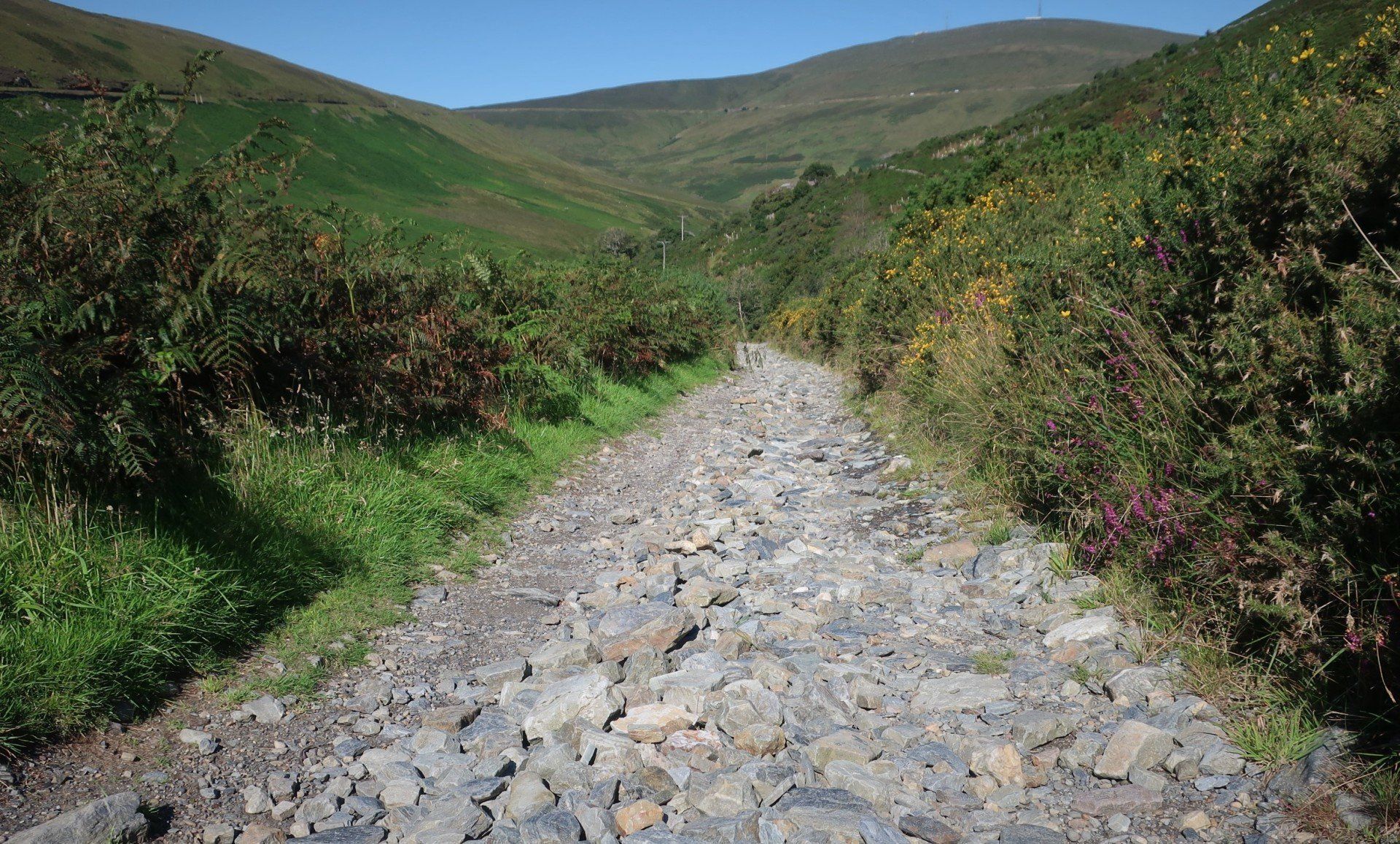 Eventually, I work my way back down the ‘other’ side via a stony trail to “the Bungalow”. I have had splendid isolation at the summit but there are a few people around at this road level. Normally a train runs up here from Laxey, also a café attracts, but all closed due to Covid