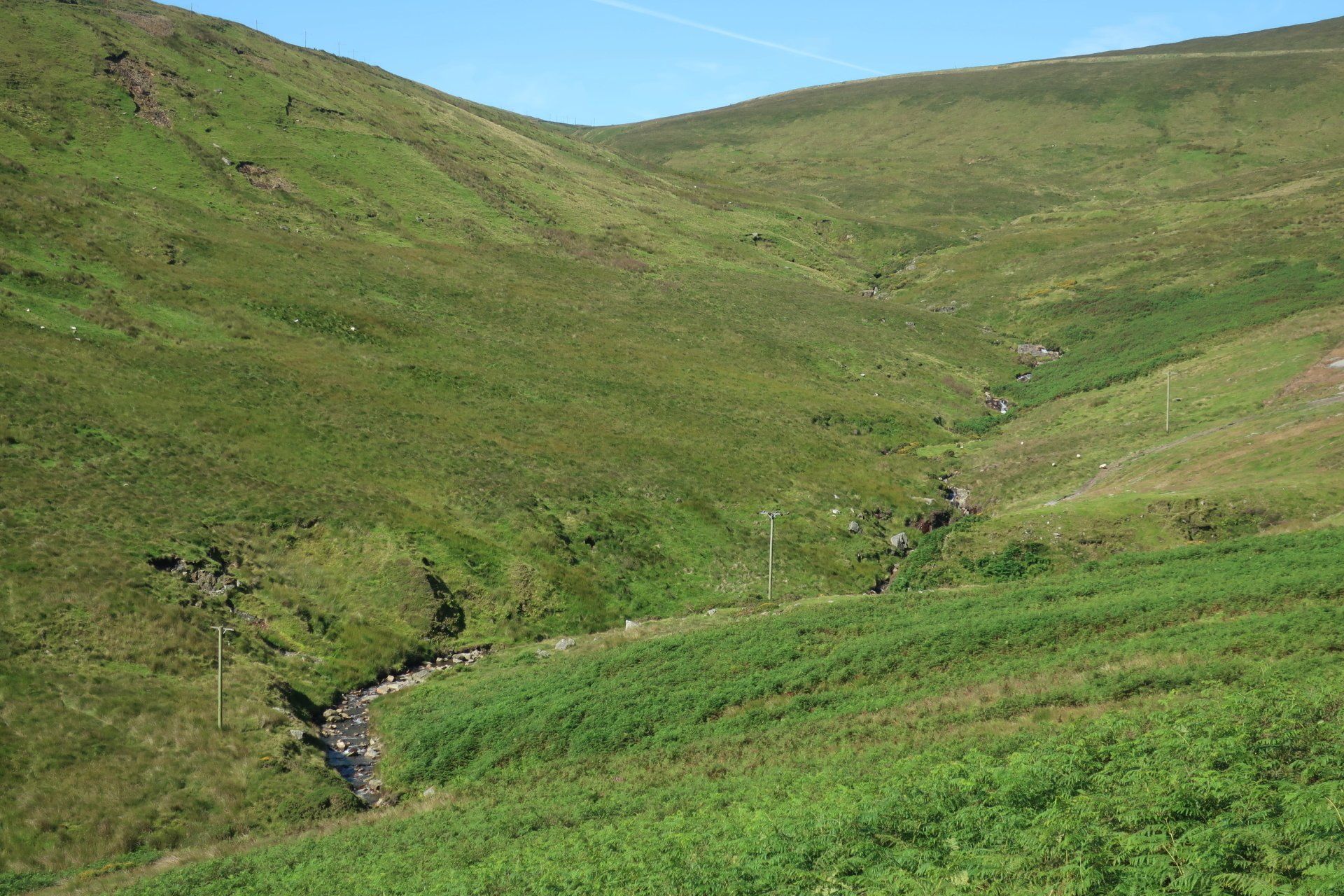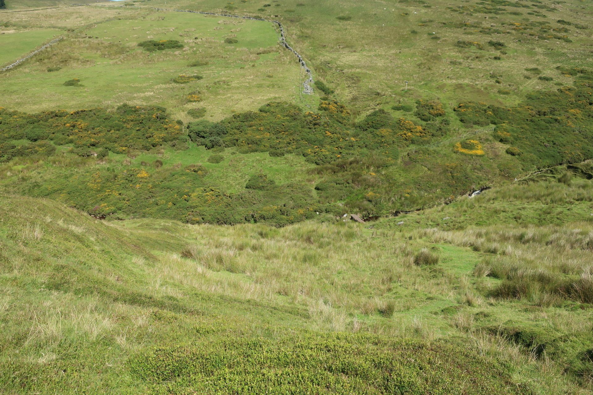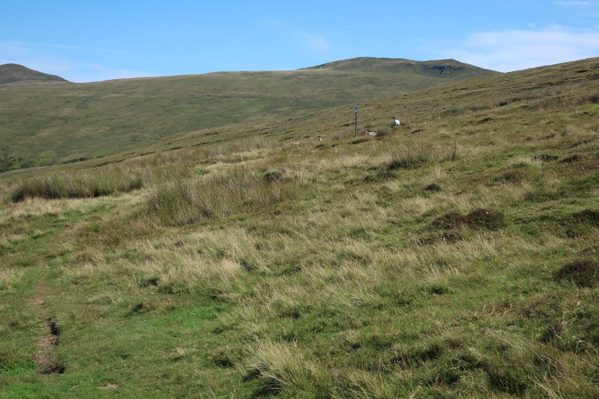 I start my route, climbing gently, initially by road, then following a path along lower valley, heading up to an abandoned mine. From here I veer sharply uphill. It is so steep I have to double over to make sure I don’t topple backwards. Bent over, scrambling and panting, the sheep look at me, thinking what is his problem!