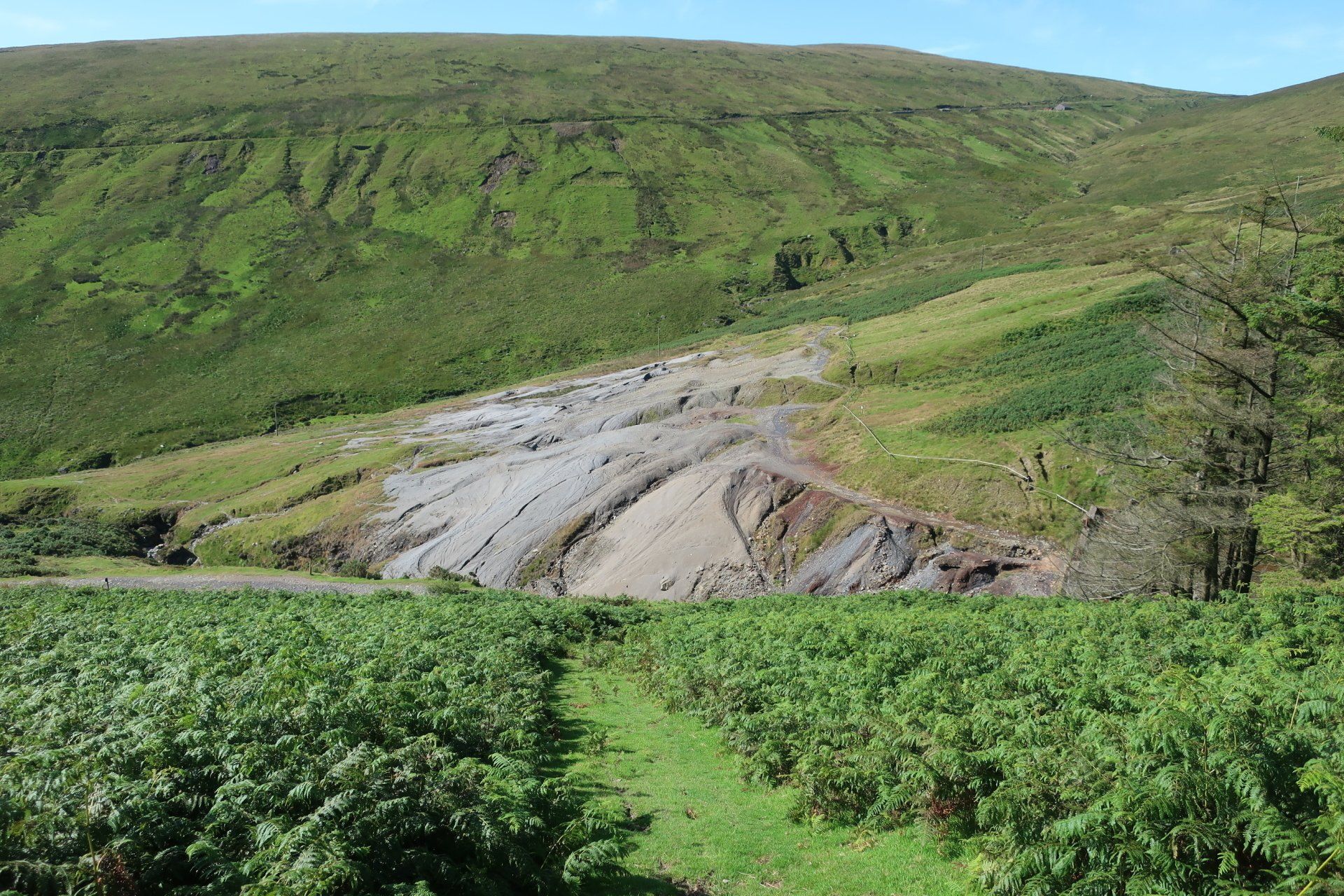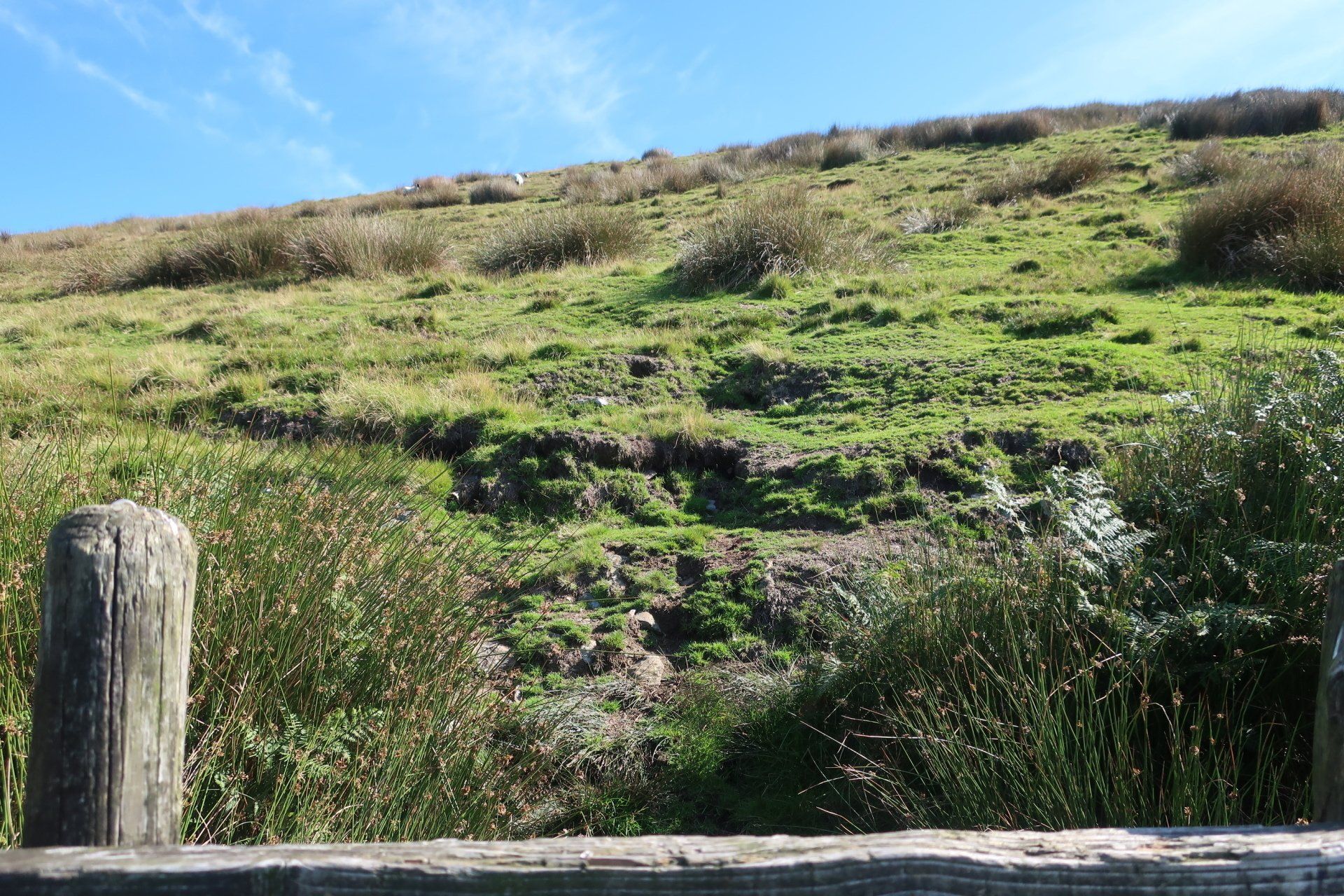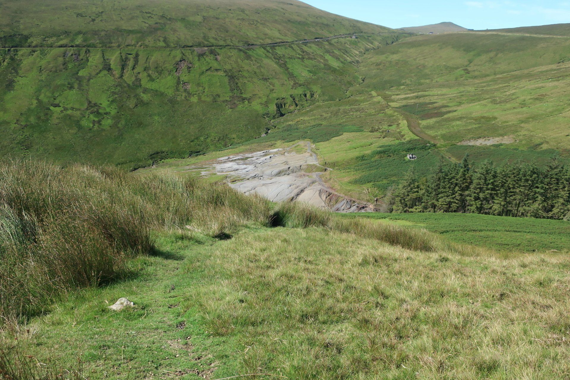 I start my route, climbing gently, initially by road, then following a path along lower valley, heading up to an abandoned mine. From here I veer sharply uphill. It is so steep I have to double over to make sure I don’t topple backwards. Bent over, scrambling and panting, the sheep look at me, thinking what is his problem!