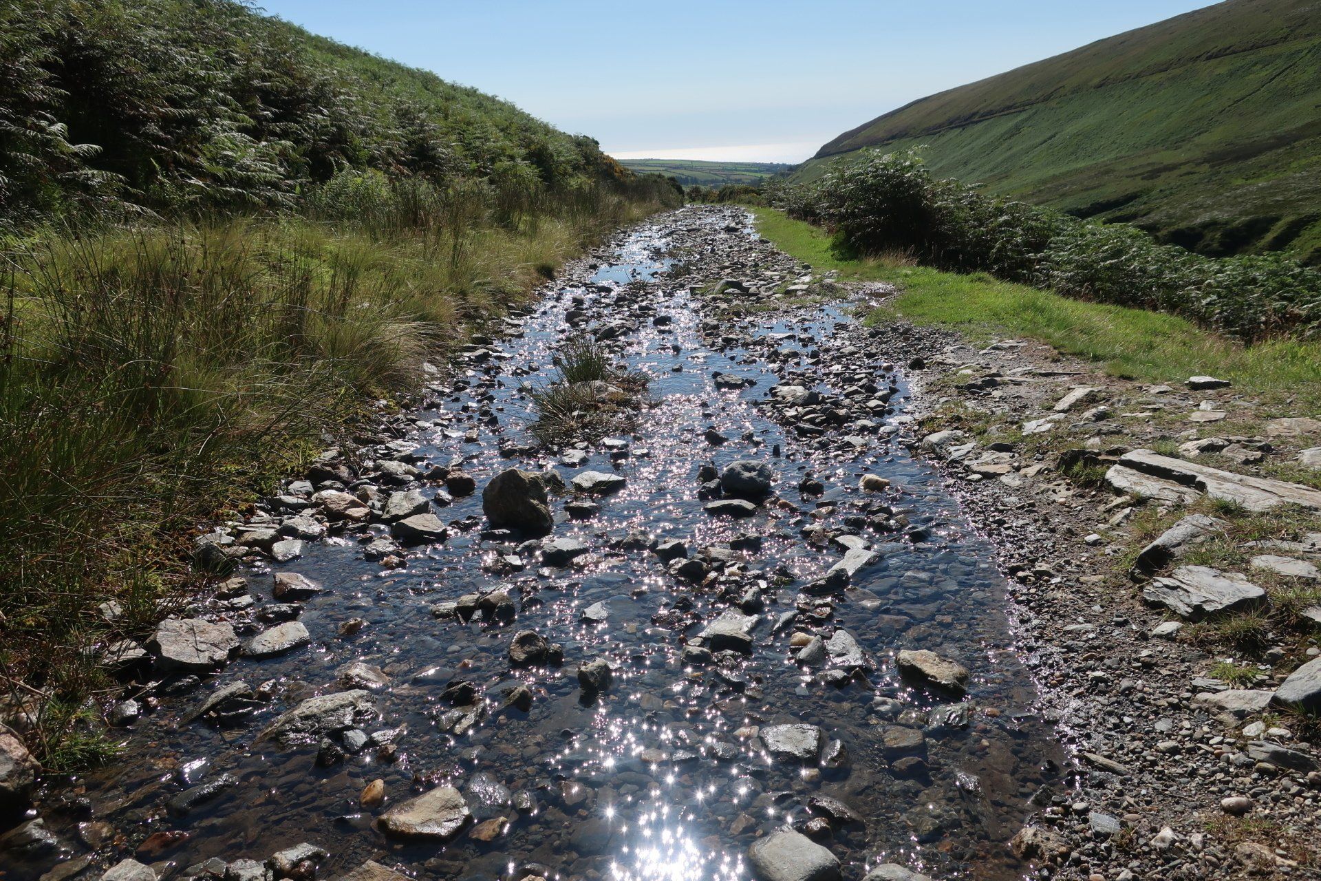 That boardwalk actually marks the end of the wild walking, as leaving it joins a trail which is designated for mountain bikes. My route follows this on a gentle descent to outskirts of Ramsey, during which I am passed by several on bikes. The IOM really is superb for hiking and biking (weather permitting!)