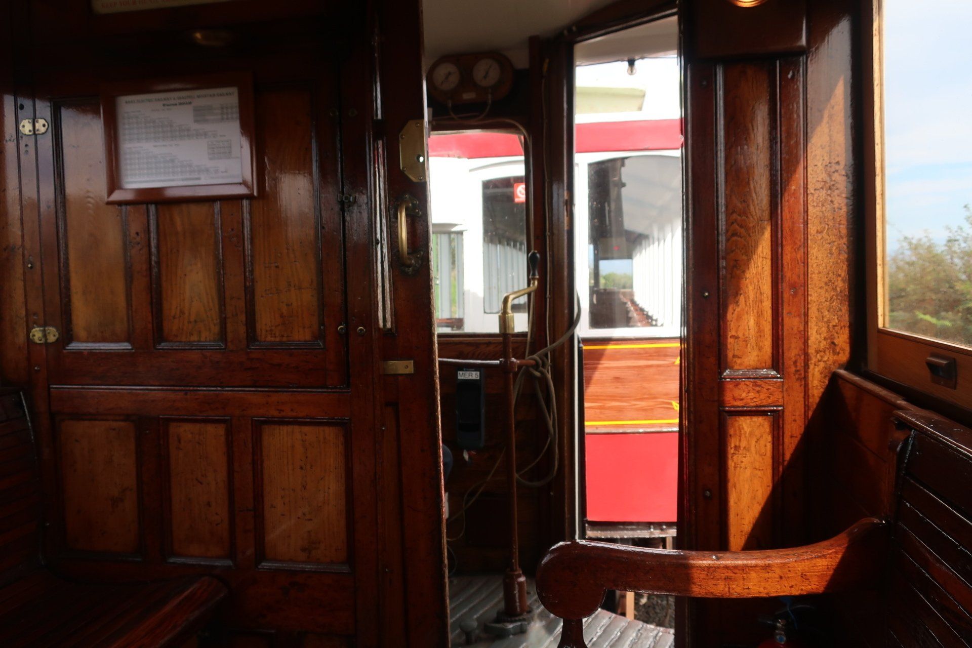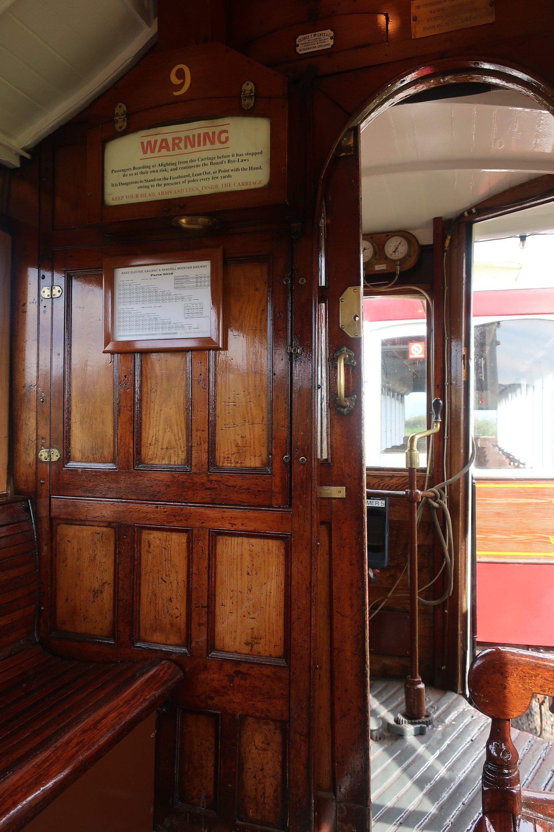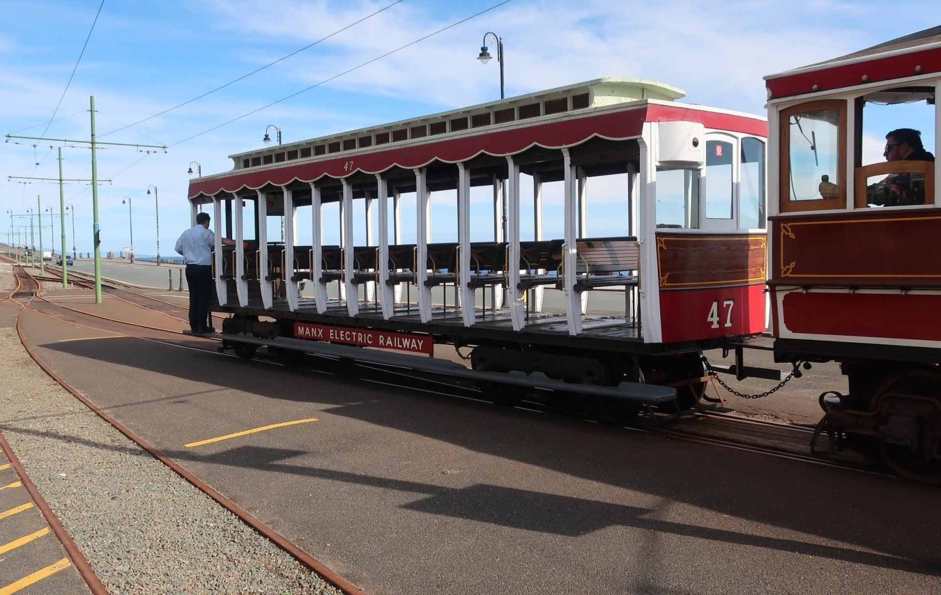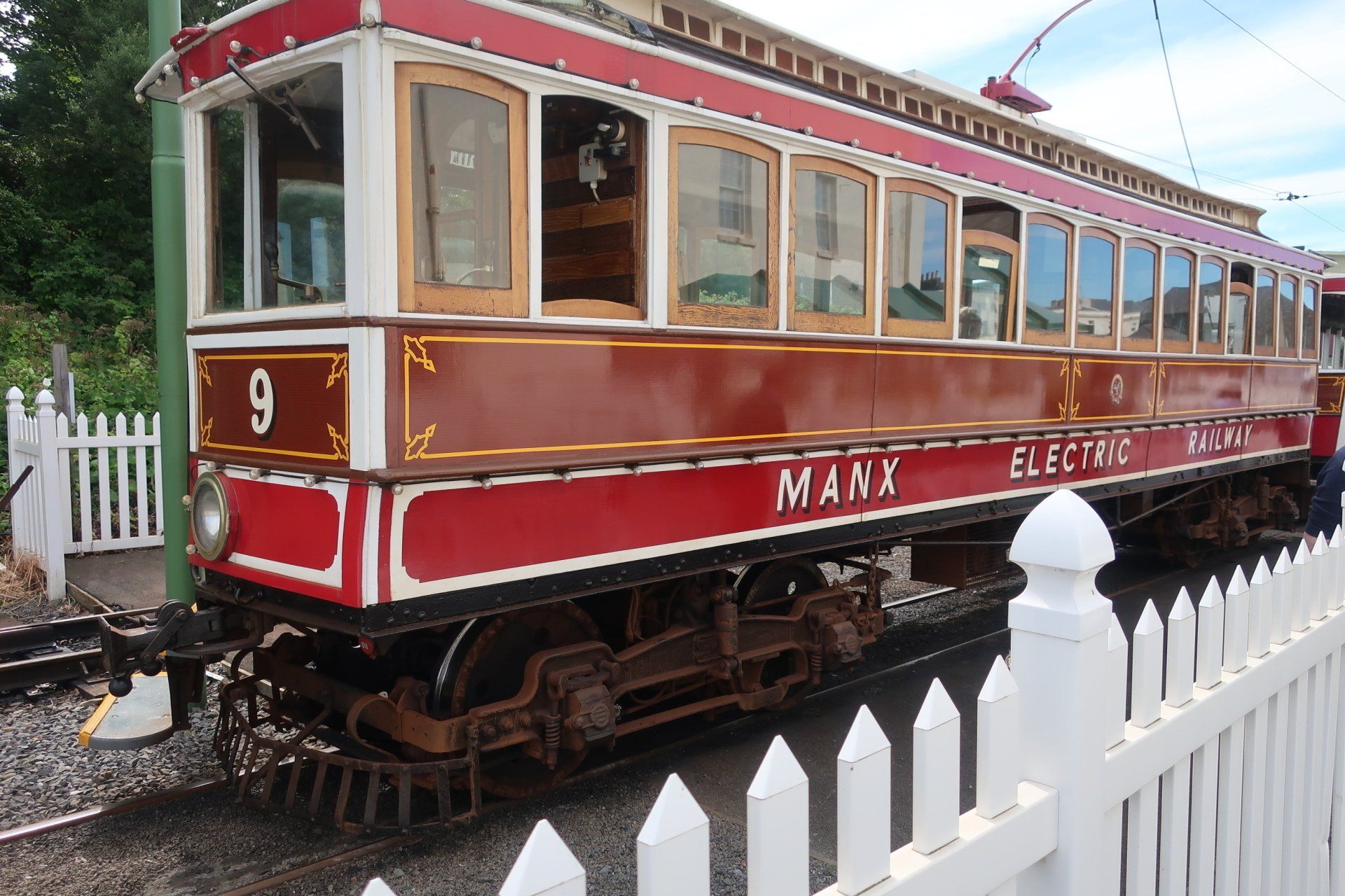 There is a railway between Ramsey and Douglas, the Manx Electric Railway (MER) and I am aware that a basic service is operating with a train due to leave soon. I think I will miss but I up my pace and with a bit of luck find and reach the station just as train about to leave. This train is of Victorian era, a beautiful carriage, which the 2 operators hook up to the overhead wires (switching on a couple of occasions as we need to change track). The ride is noisy, shaky but great fun, with the 1 hour journey an opportunity to see the sights, including some I walked yesterday