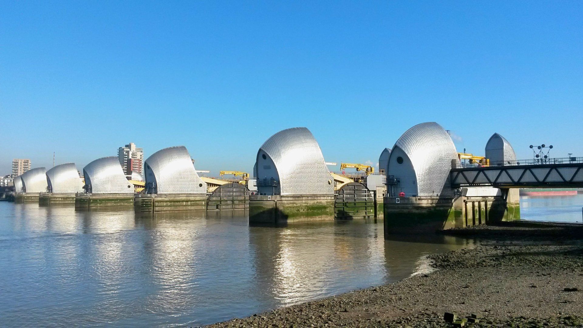 The Thames Barrier is functional, it has helped stop London from flooding since 1982, but it is so much more. Undoubtably an engineering marvel, but also a work of art. There is just something about it that I find fantastical, certainly this morning it is in full glory, it’s 9 gleaming silver piers offset against the crisp, blue sky