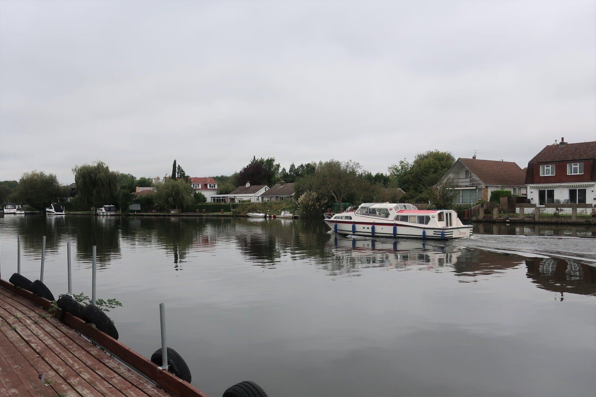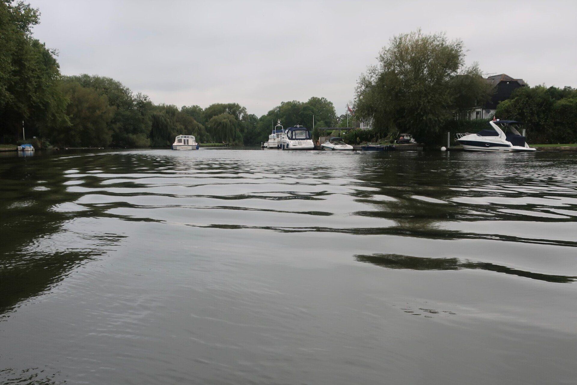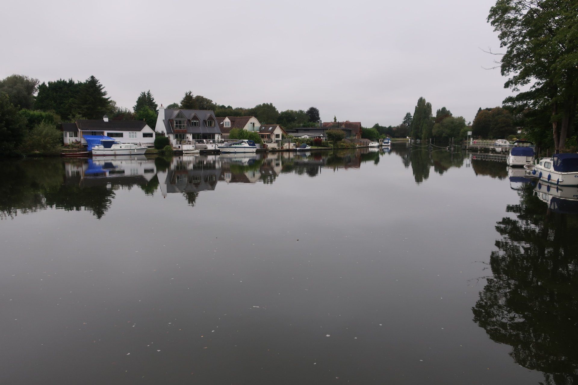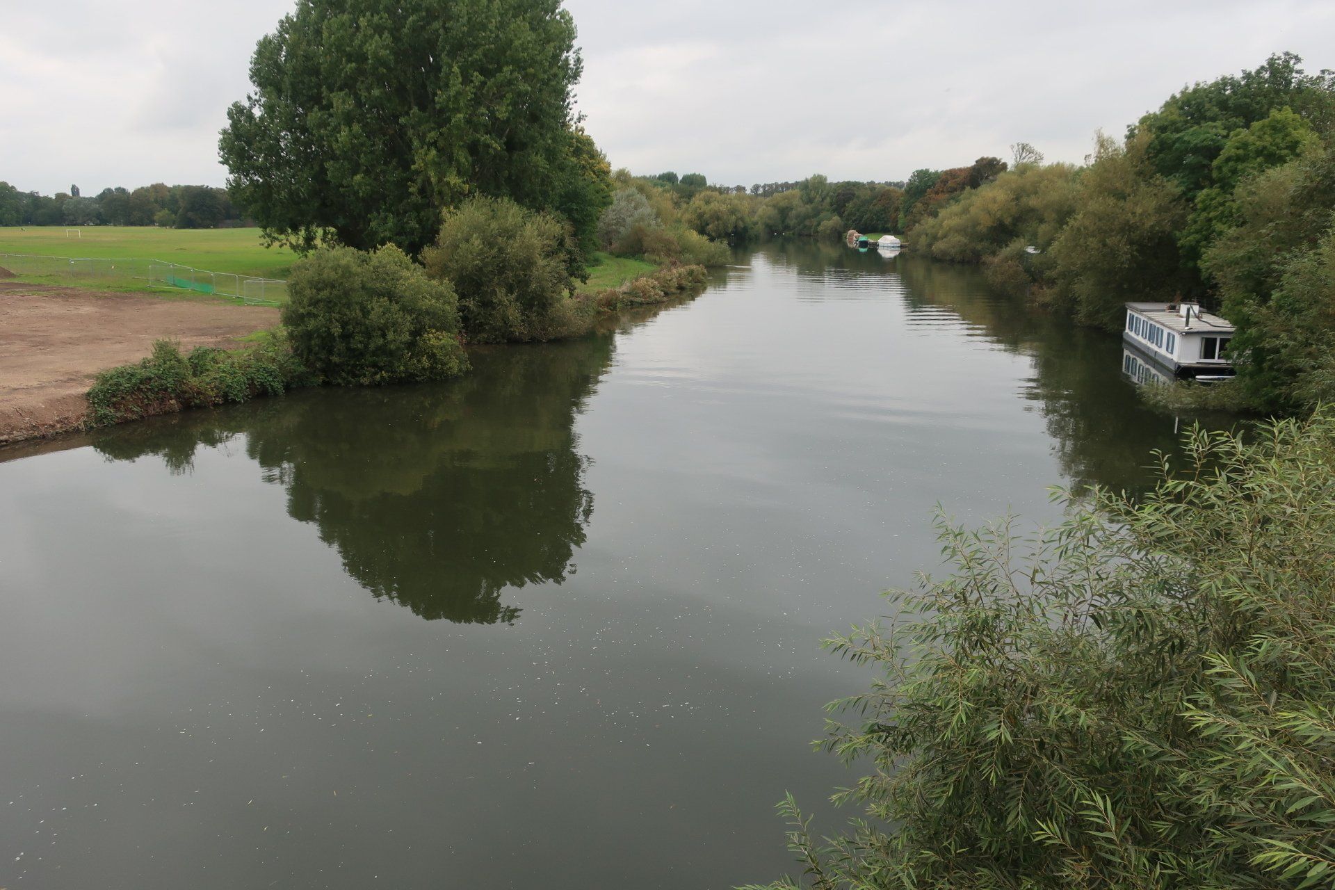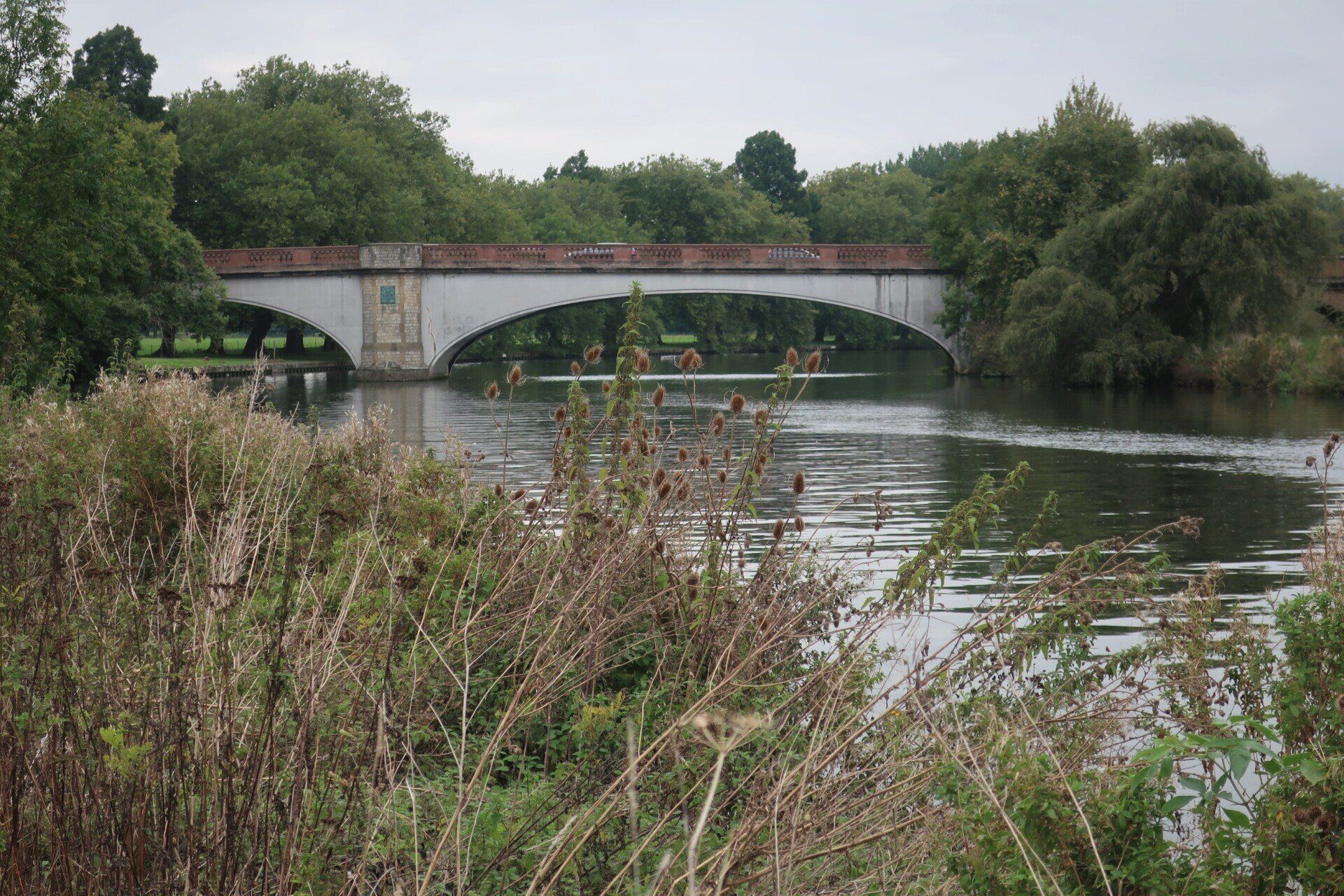 After a while the human impact disappears and nature takes hold in the form of Dumsey Meadow, one of the few remaining ‘grazed, unimproved’ Thamesside grassland areas, important for wildflowers, butterflies & insects. Civilisation returns in the form of Chertsey and then the M3. Fisherman congregate around the bridge and I wonder why. All those scenic, peaceful spots available and they sit under a throbbing motorway! Maybe the fish like it