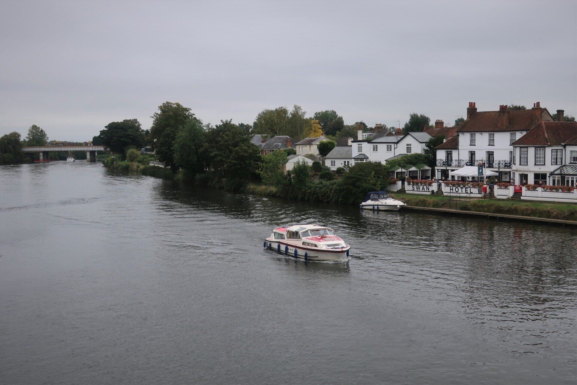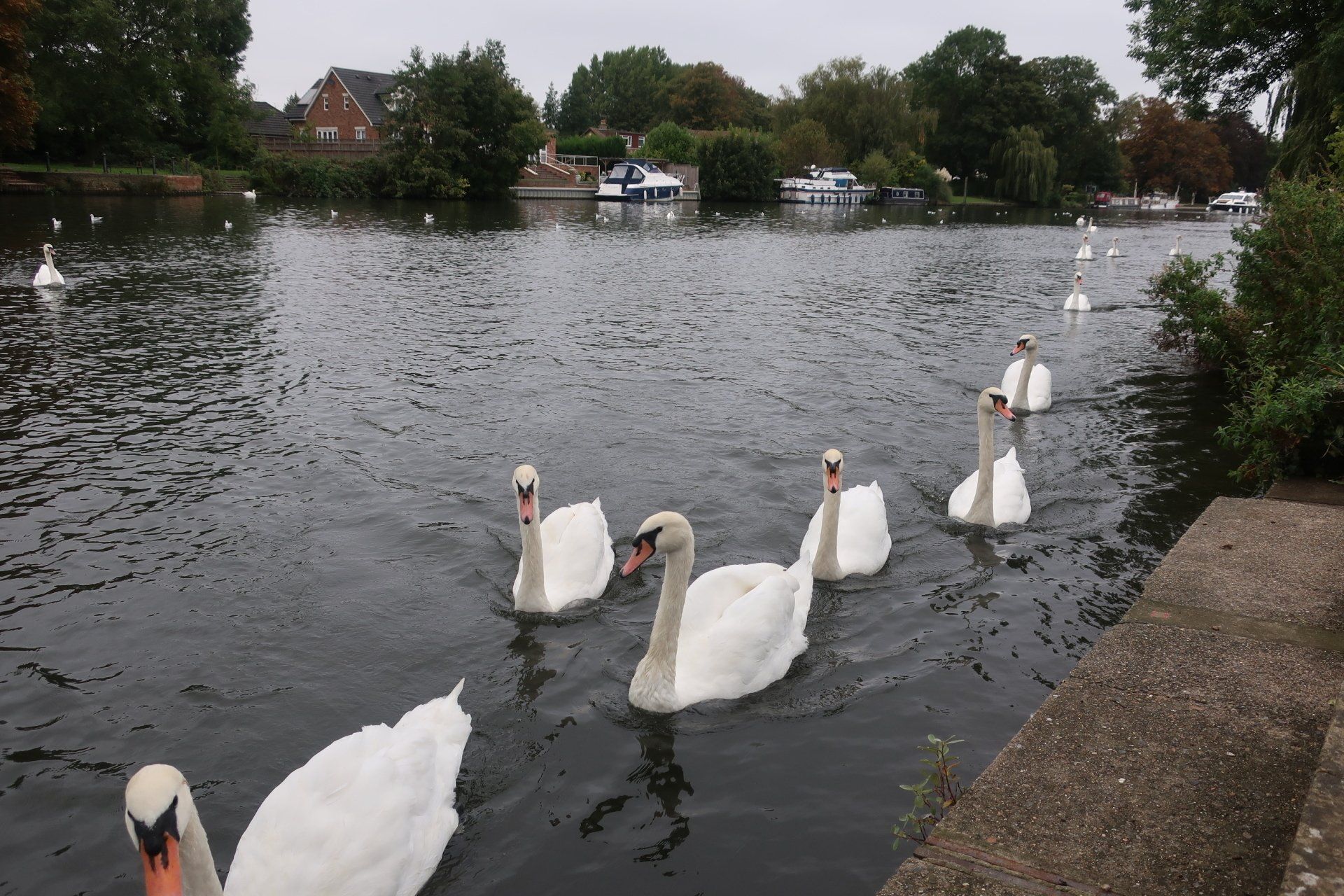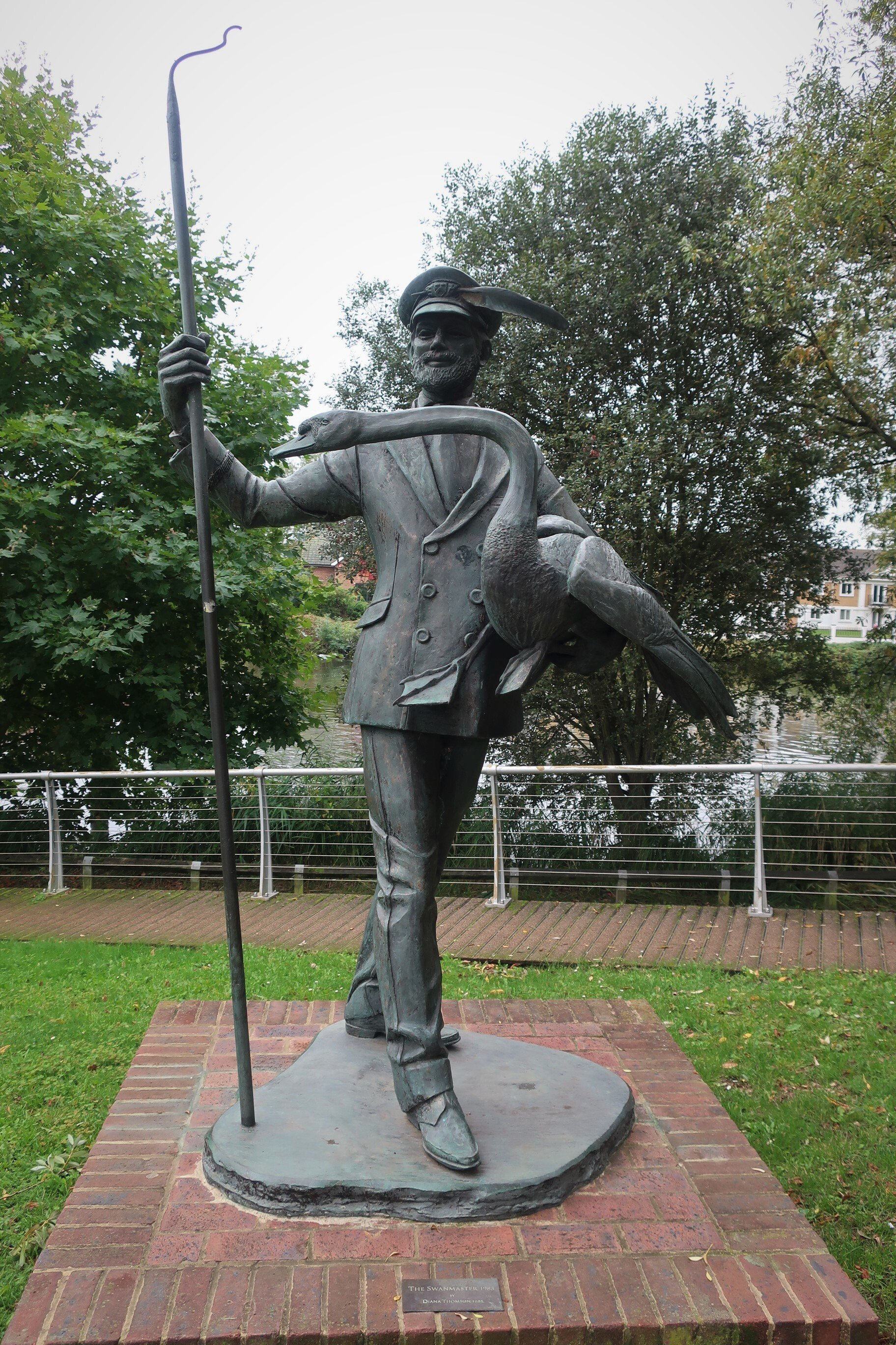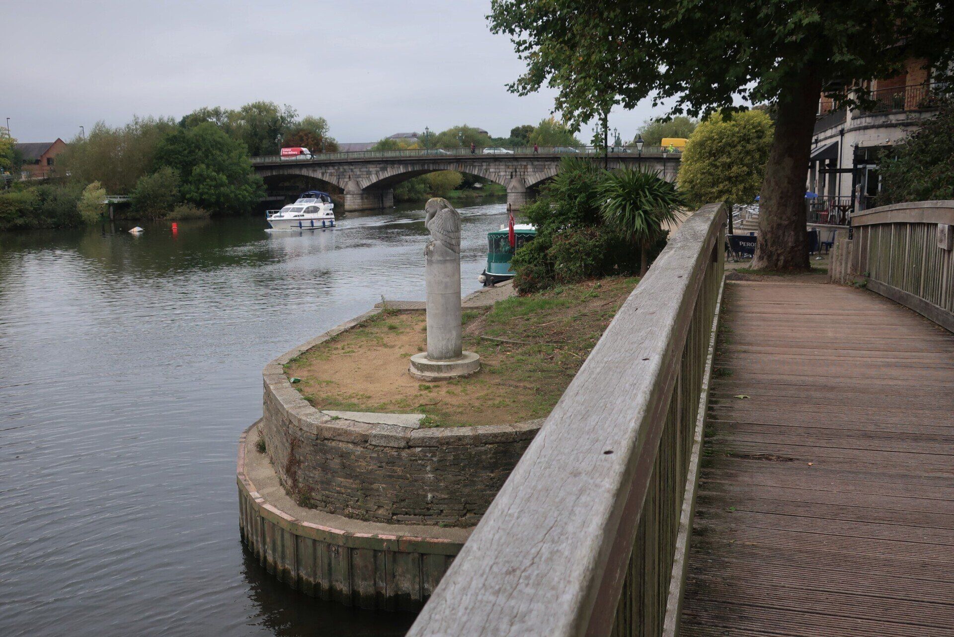 Next stop is a larger town, Staines (or Staines-on-Thames), which has a few notable items of interest. There is the London Stone (replica), marking the upstream limit of the City of London’s jurisdiction which existed for 7 centuries through to 1857 and the Coal Stone, similarly marking a limit, this time entering an area of coal levies. Also various art, including the rather enticing Swan Master statue, which I am assuming is some reference to the annual ‘swan upping’ (counting of the number of swans on the Thames)