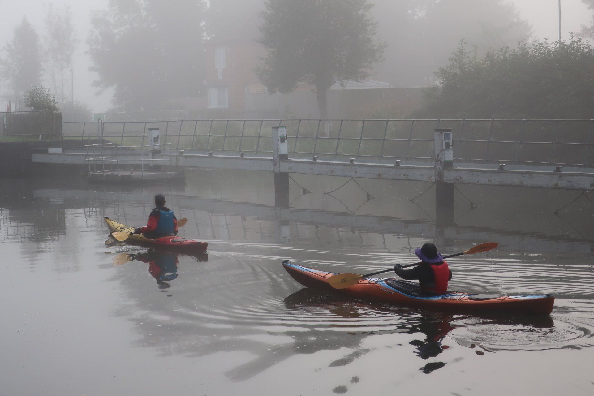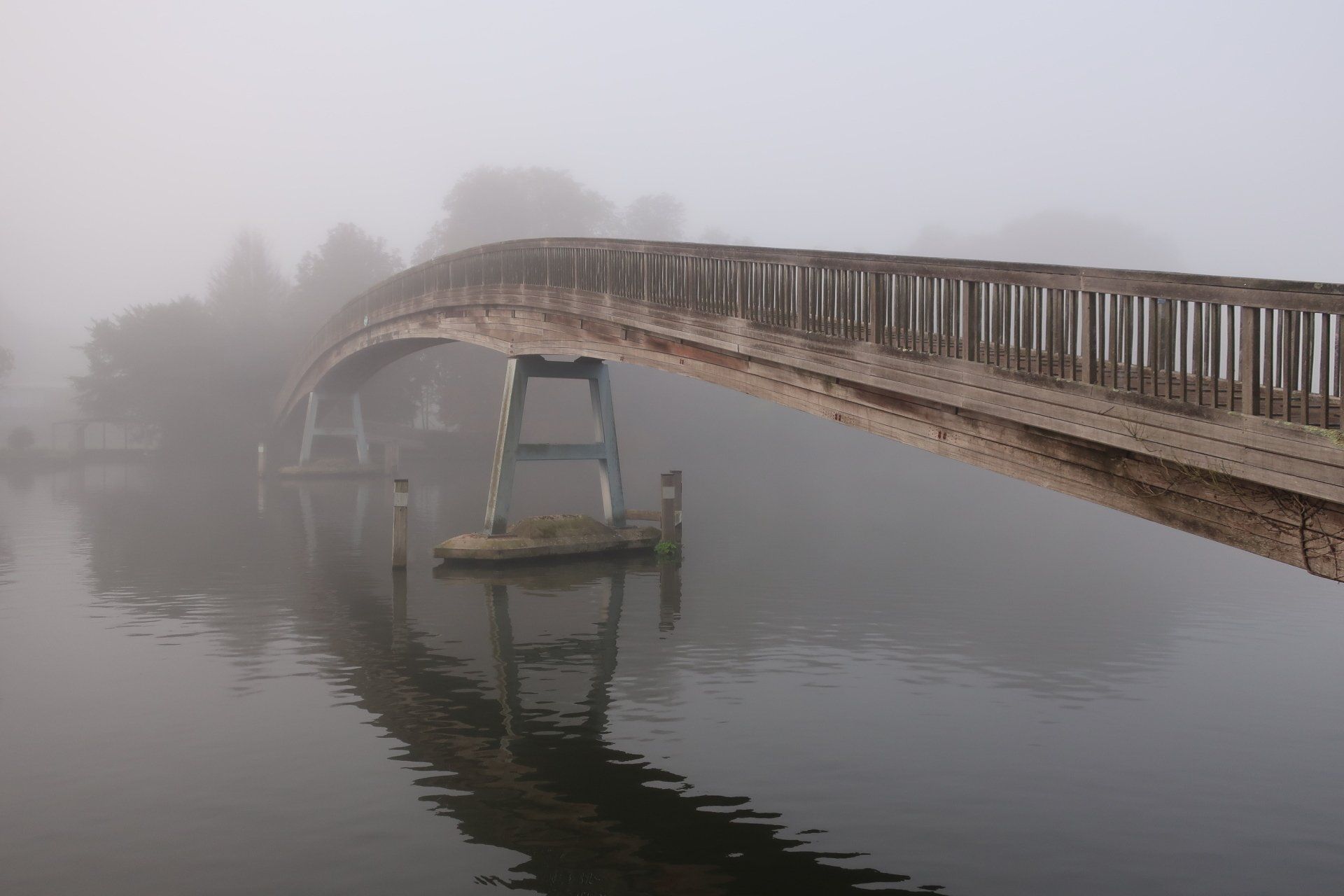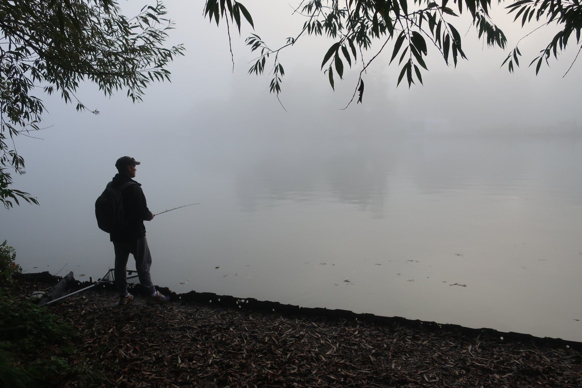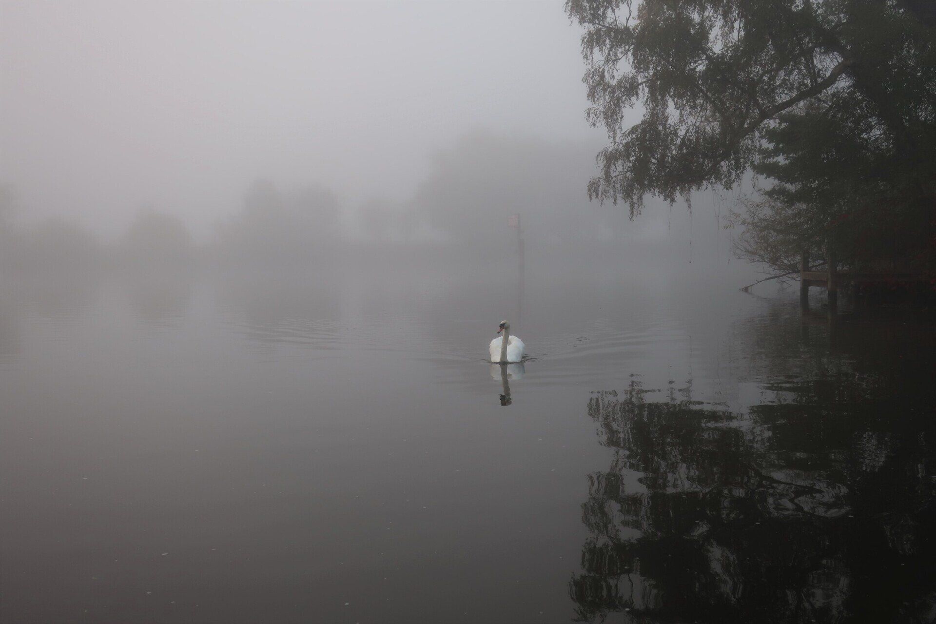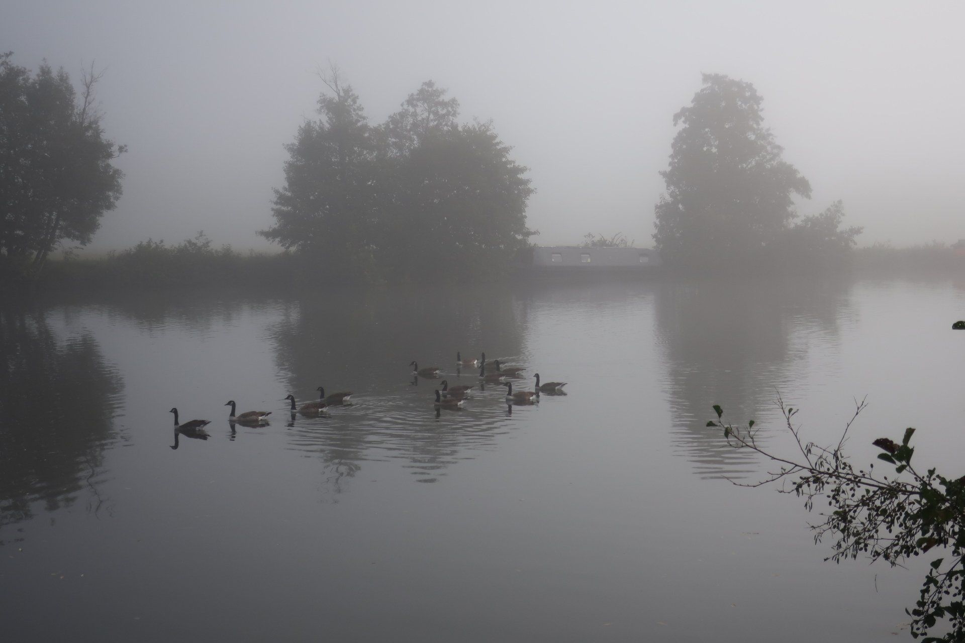 And fog there is, a real pea souper…and it is brilliant, so atmospheric. Noises become a focus, the throbbing ahead of cars over the bridge, the cacophony of sound from a bunch of geese, the swish in the air as swans fly past