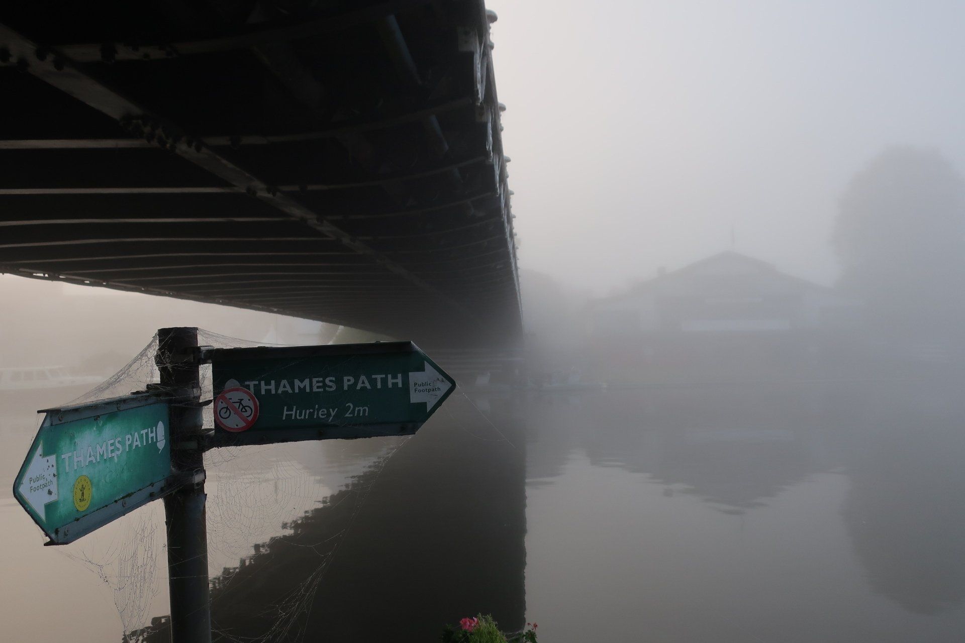 And the views, all moody, with indistinct shapes in the mist, slowly forming and coalescing as you approach. Marlow is just ahead and I wend my way through ‘Severn Corner Alley’ and emerge near All Saints Church, trying to get artistic with the photos. Another fine suspension bridge crosses the river but I remain on the North bank and set off on the path towards Hurley. There is not a ripple on the water, other than the wake from birds or a group of kayakers…just stillness. It is quite beautiful