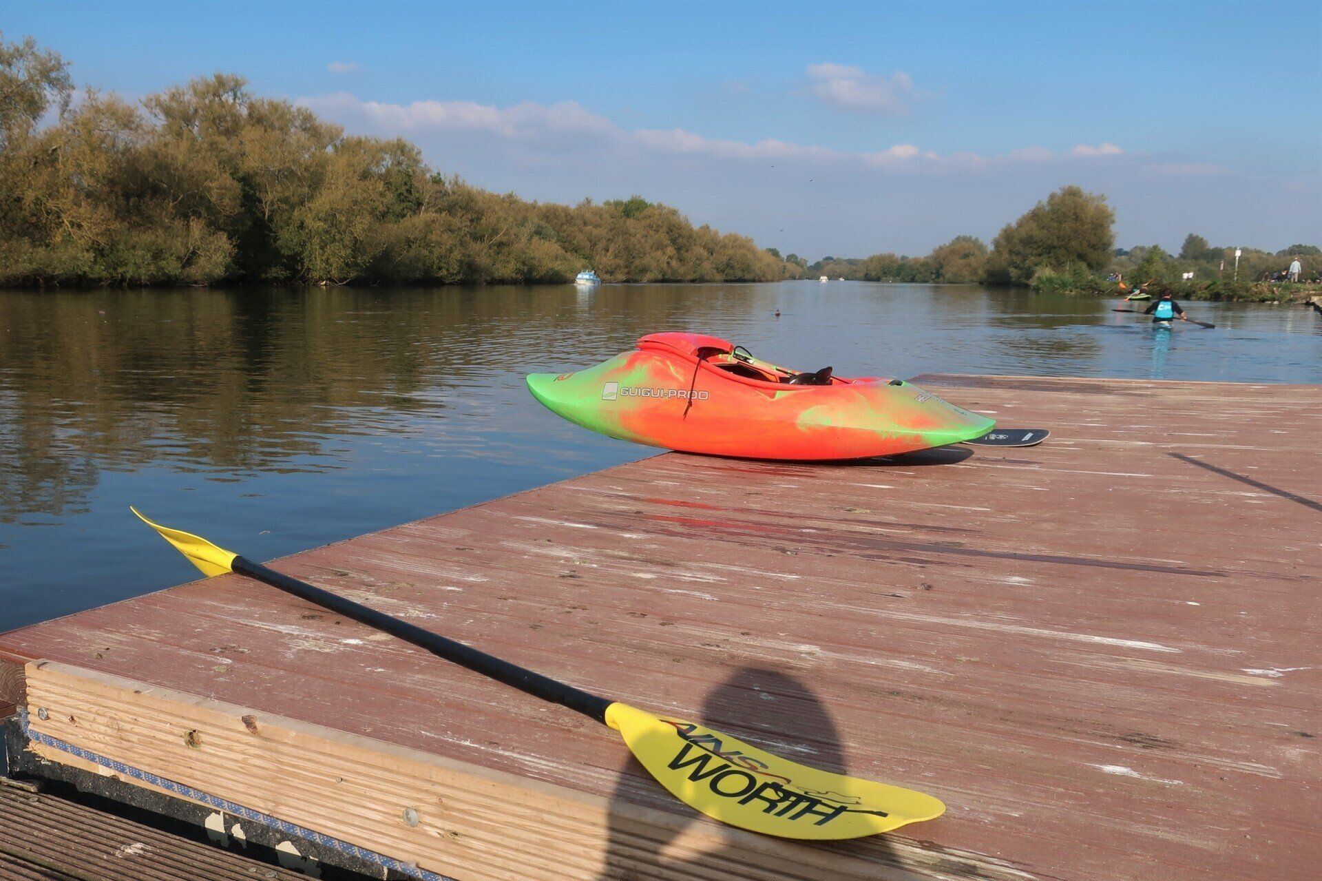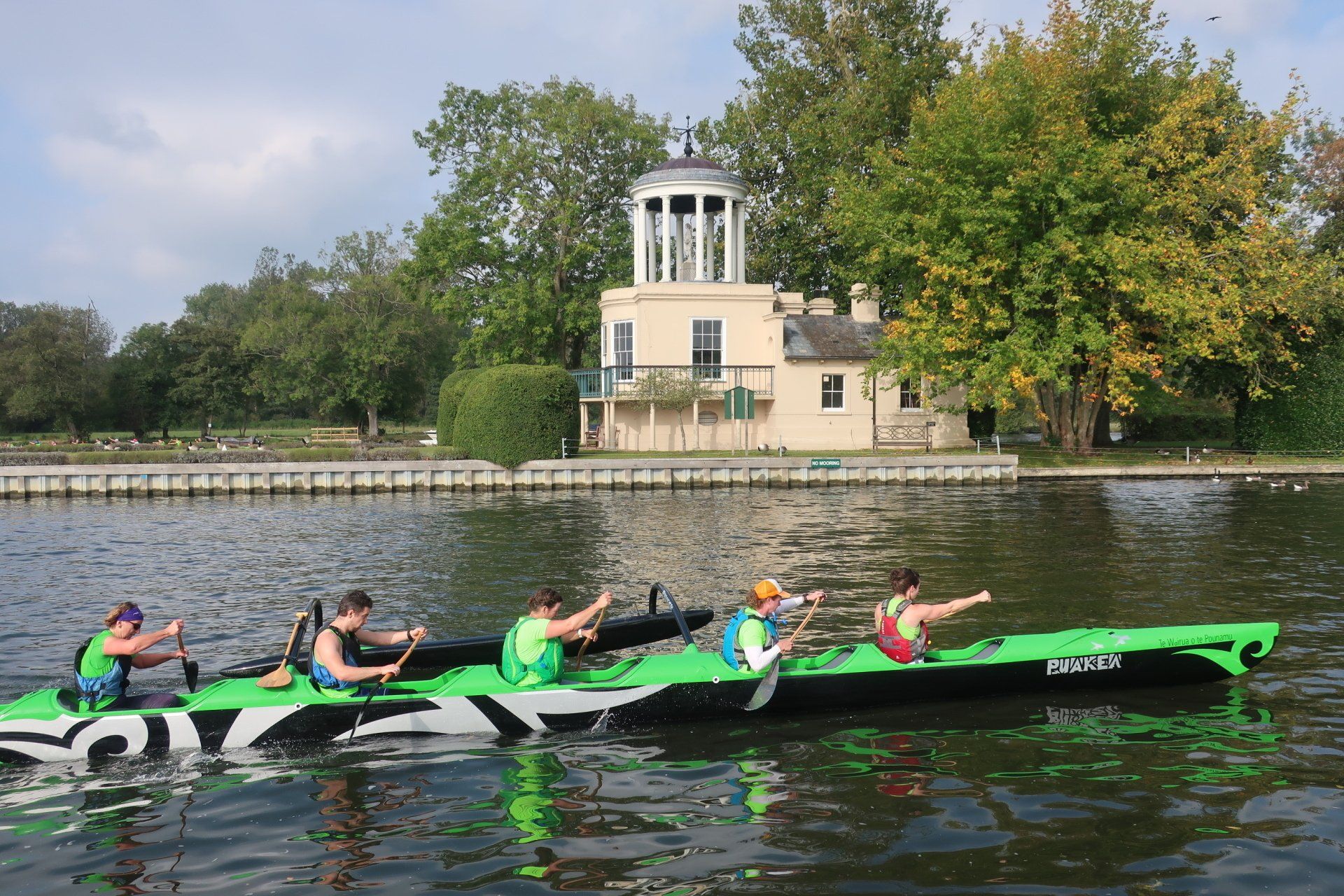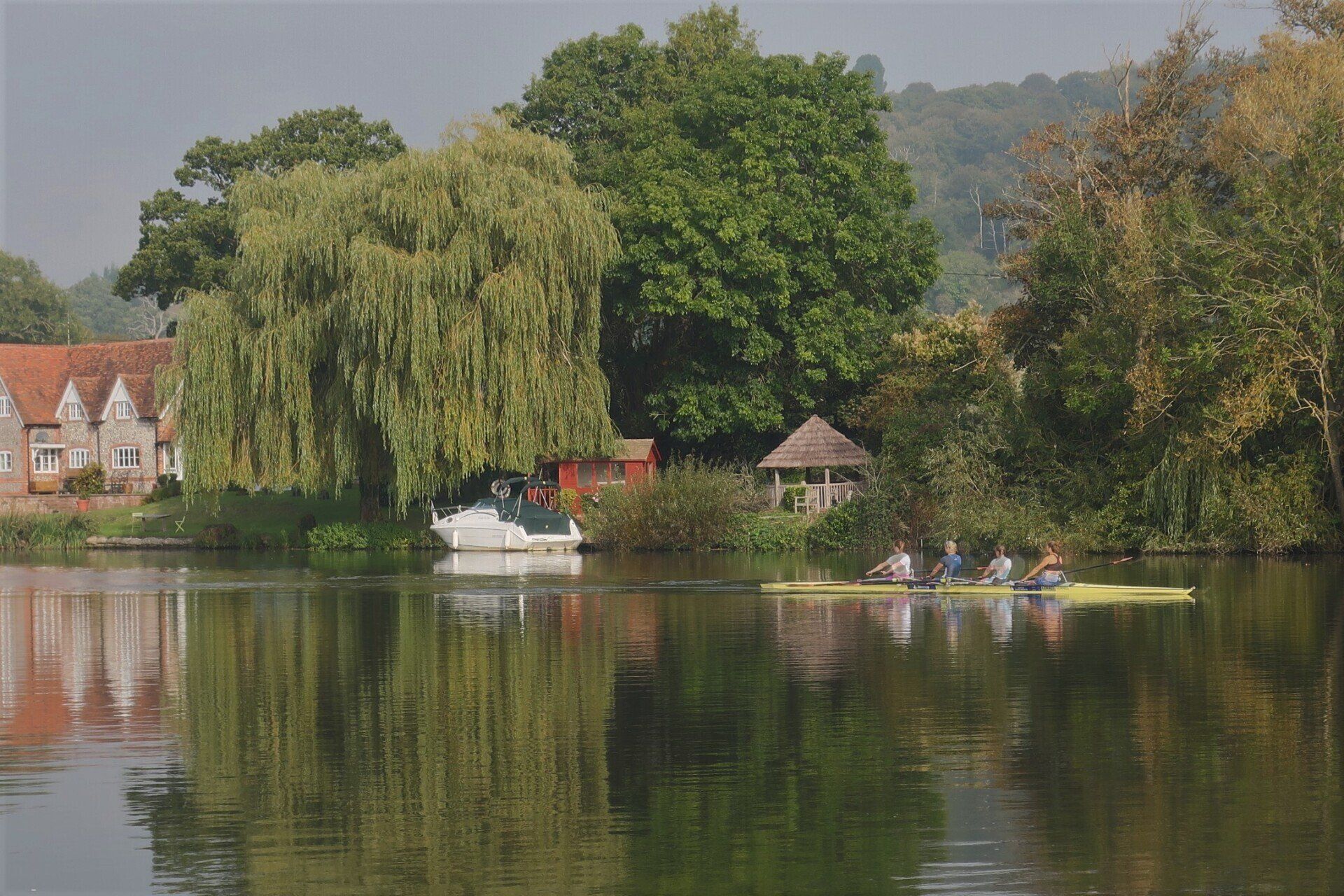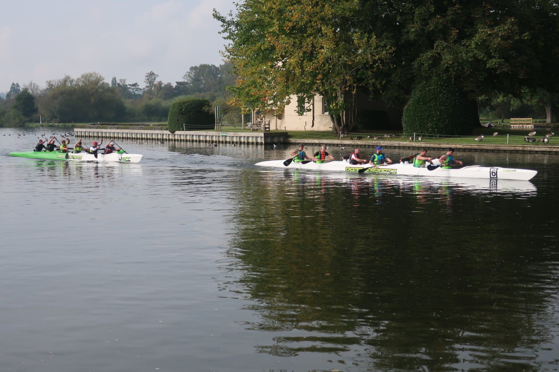 From here, I enter the Henley area, the rowing mecca. Lots of crews are out training on the river, their coaches riding bikes on the river bank, shouting encouragement. Yesterday, I had quite a time on enclosed, tree lined paths, but these are wide open spaces and it is enjoyable to see the landscapes, especially with the sun out. Nearing Temple Island, the starting point for Henley Regatta, I realise there is some racing underway, with boats (canoes?) approaching. Some pass by and the effort and exertion from the rowers is intense…and they are not even half way yet