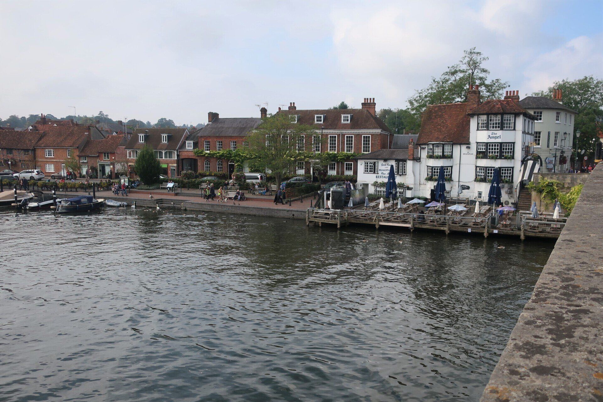 Into Henley itself and I cross the bridge and spot The Angel on the Bridge Pub, which looks an inviting place for lunch. I sit on the deck over the water and enjoy sausage & mash and a cider in the sun. Today is a good day