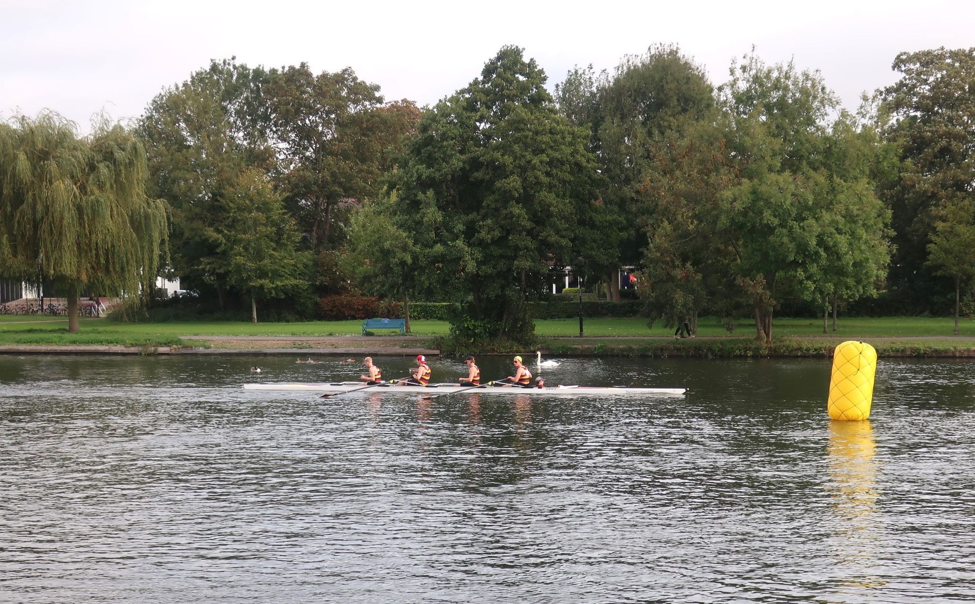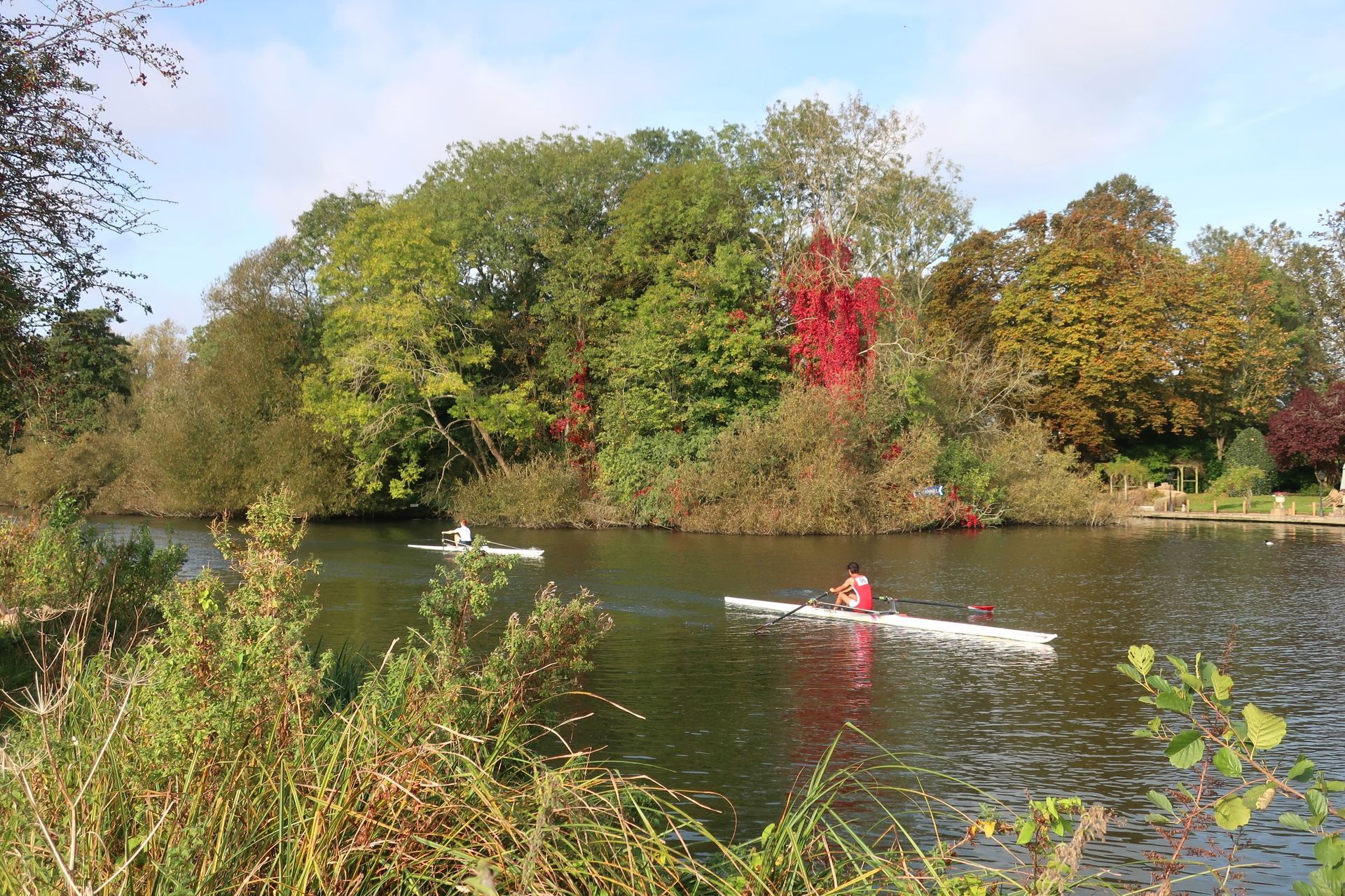 On the river the immediate impression is of lots of rowers and I discover it is race day, with a host of the rowing clubs from the local area in competition. Their coaches cycle along the towpath barking out orders or encouragement, spectators clap and shout, with lots of “come on’s” “last 300m now” and “push all the way” etc filling the air. This is spread out over quite some distance along the river and is quite the spectacle. Nice atmosphere