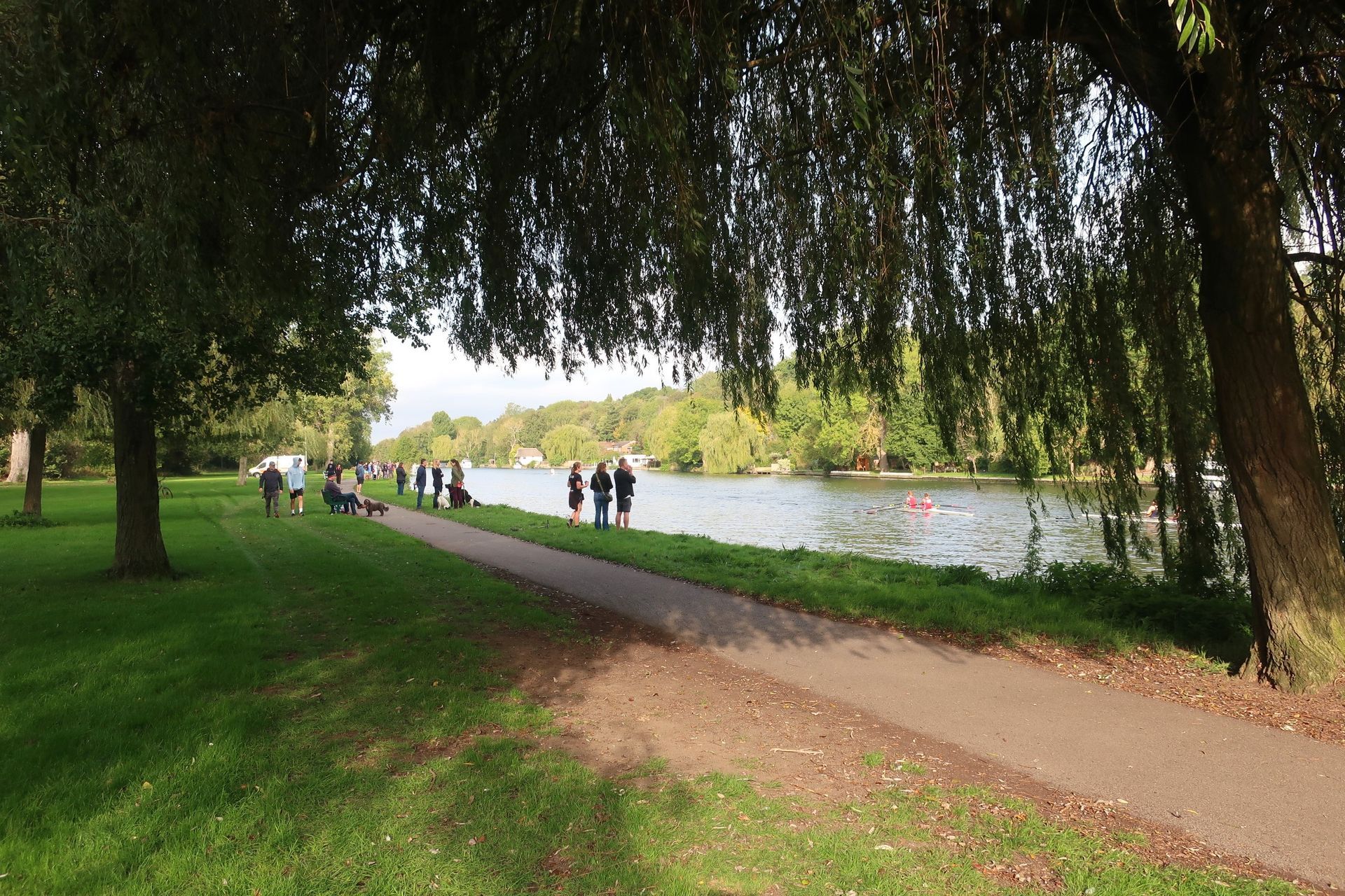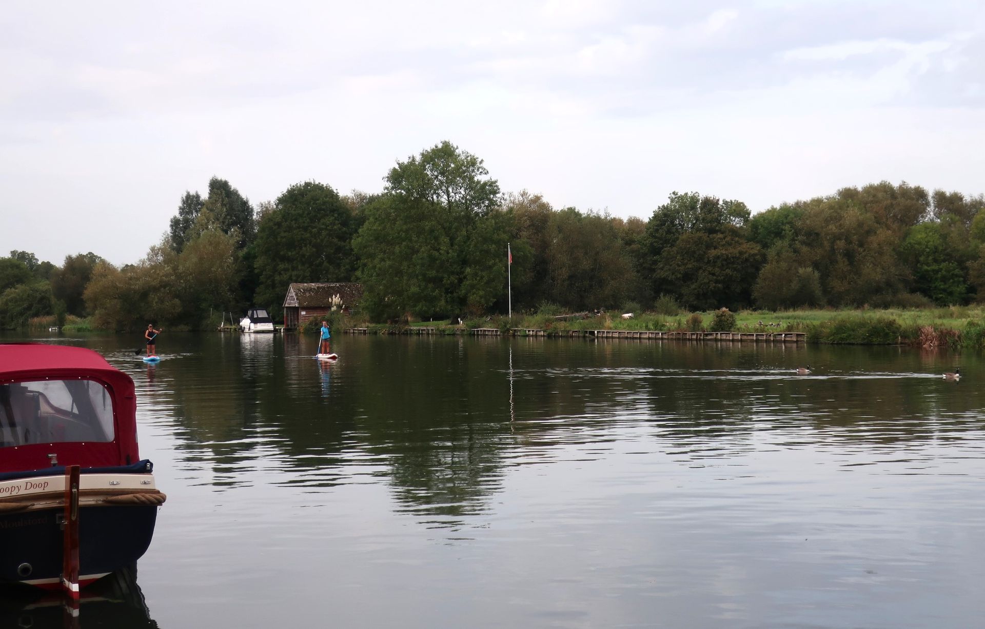 From here there is open meadow by the river all the way to Pangbourne. This area is busy, lots of walkers, many with dogs. On the river there are boats, kayaks, SUPS, even a few swimmers. Everyone enjoying the sunshine
