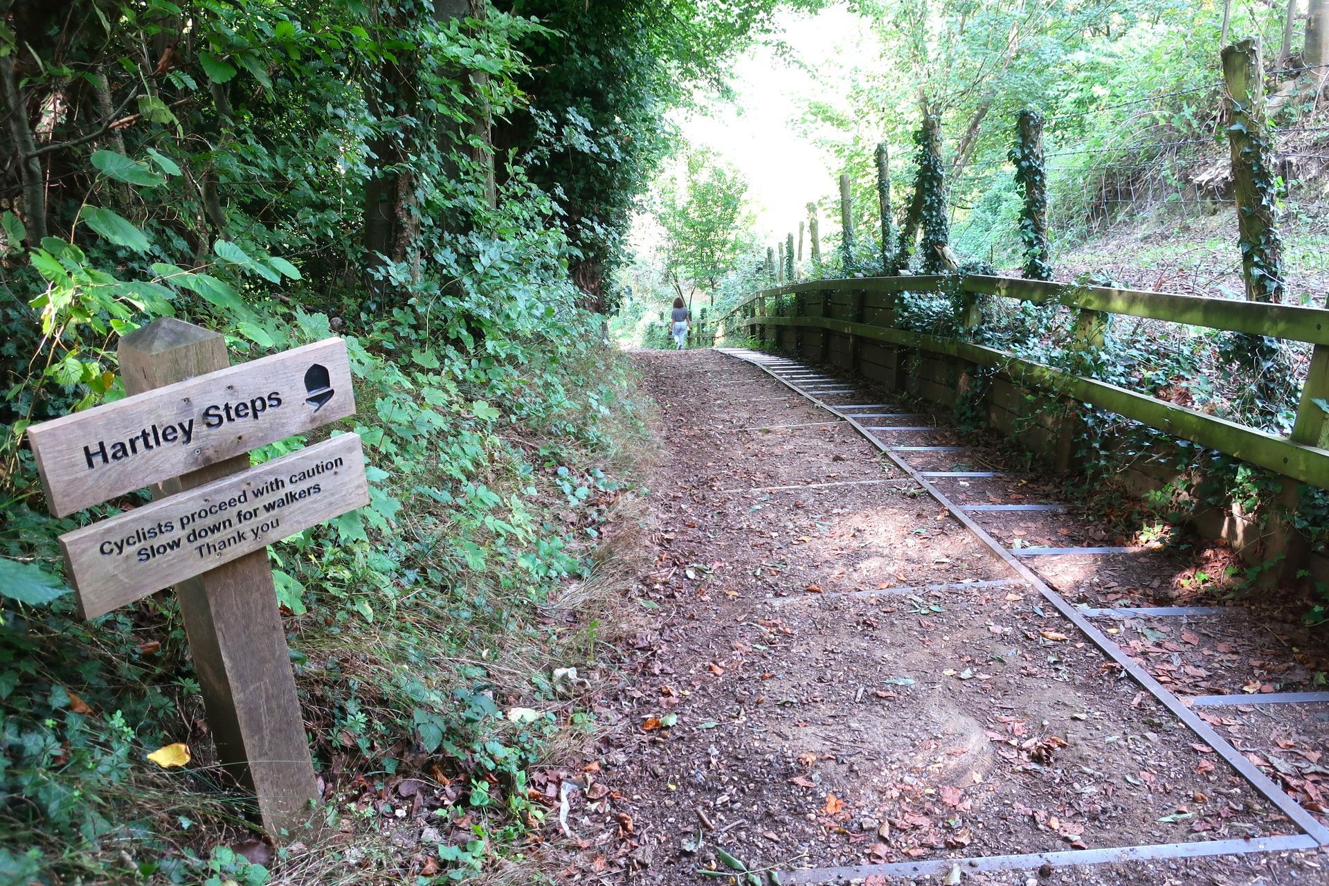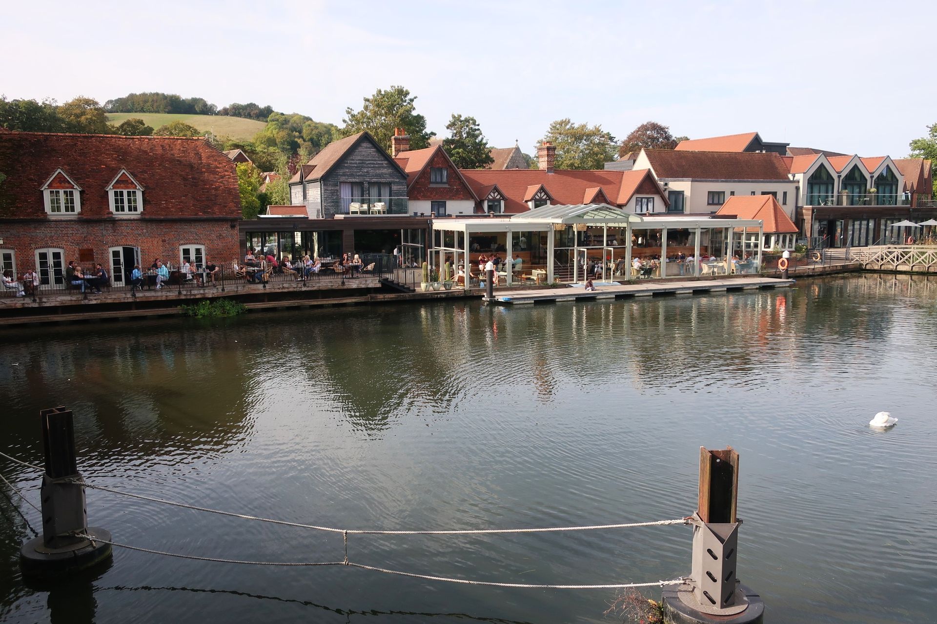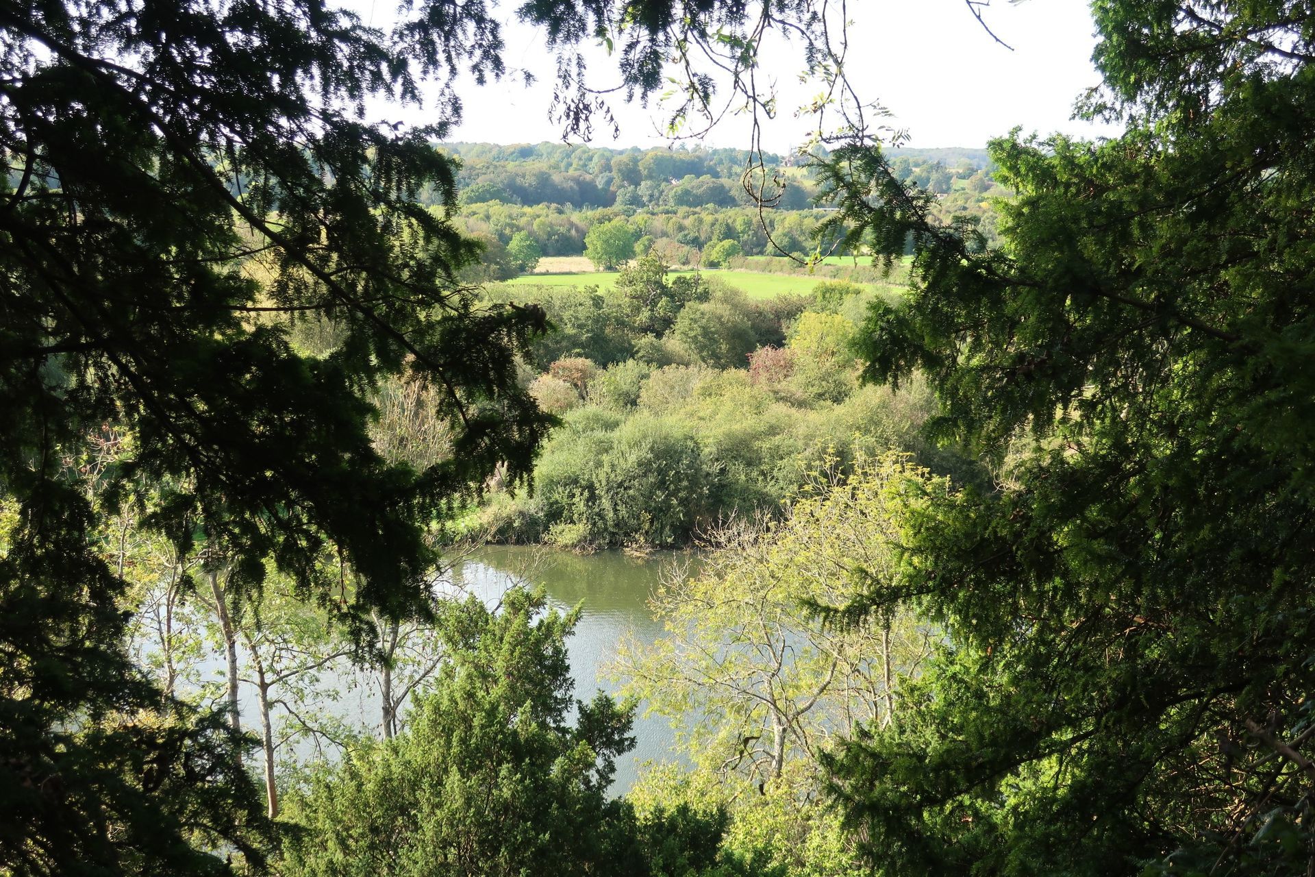 I cross the rather smart looking bridge at Pangbourne, a toll bridge – 60p for cars, free for those on foot – to reach the village of Whitchurch-on-Thames, where I call in at The Greyhound Inn for drinks and snacks. The refreshments is needed as I enter the Goring Gap, a valley carved through the chalk hills, and actually need to climb a hill and steps! Ok, not a very big one, but a first for the Thames Path. The trail trundles along in woodland but at a higher level, giving glimpses of the river from above and the rolling hills in the background – a different view to the norm. This continues for a while, before returning to the riverbank and more meadows. Again, more walkers, swimmers and others messing about on the river one way or another