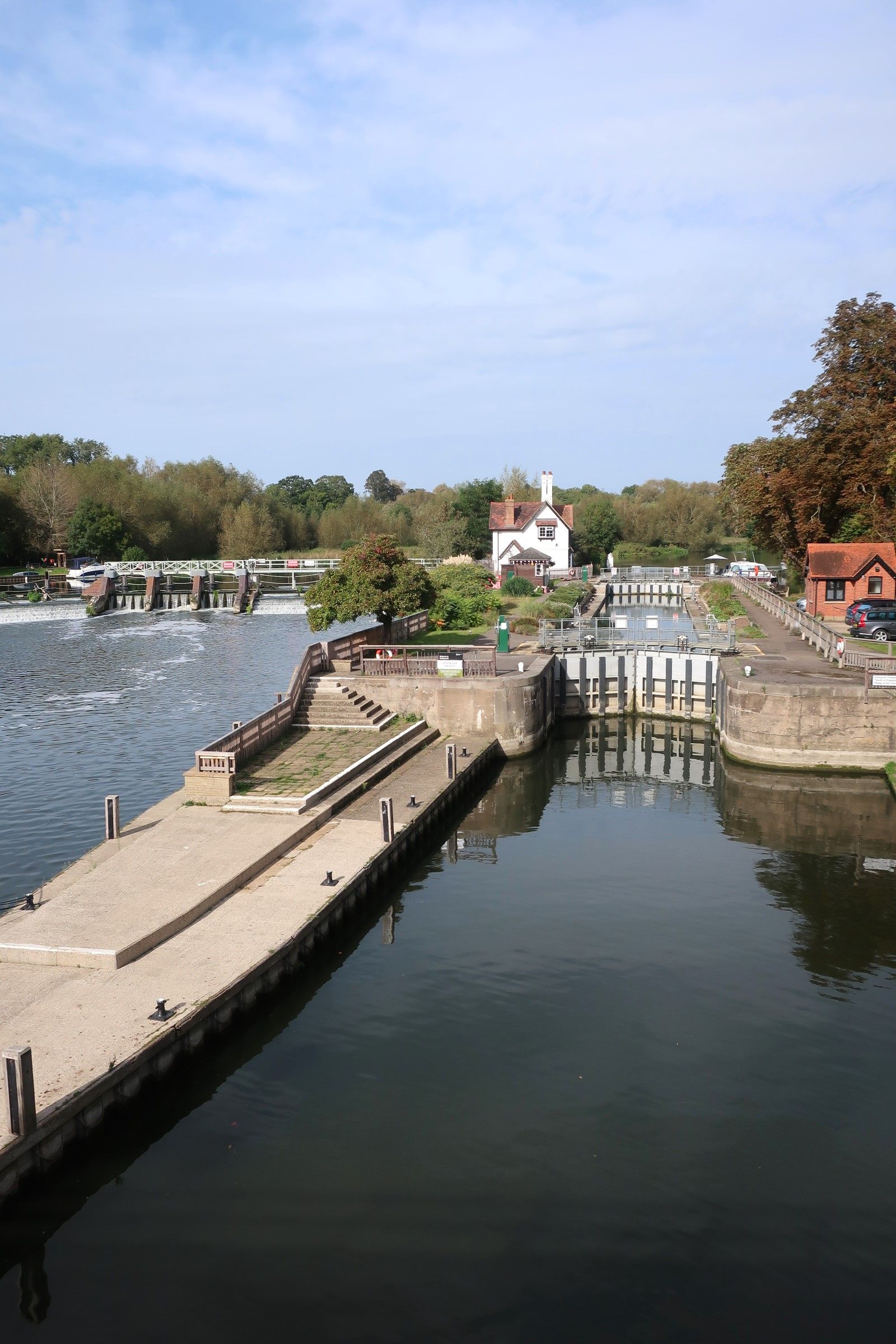 Around Tilehurst I am diverted from the river, in fact I think I go inland a bit early and end up with some less than scenic walking but I eventually work my way back, emerging at Mapledurham Lock which is charming. I have a break, watching the lock-keeper work the flow. Last time I was on the Thames all the locks were fenced off and unattended as a result of covid, so great to see life return